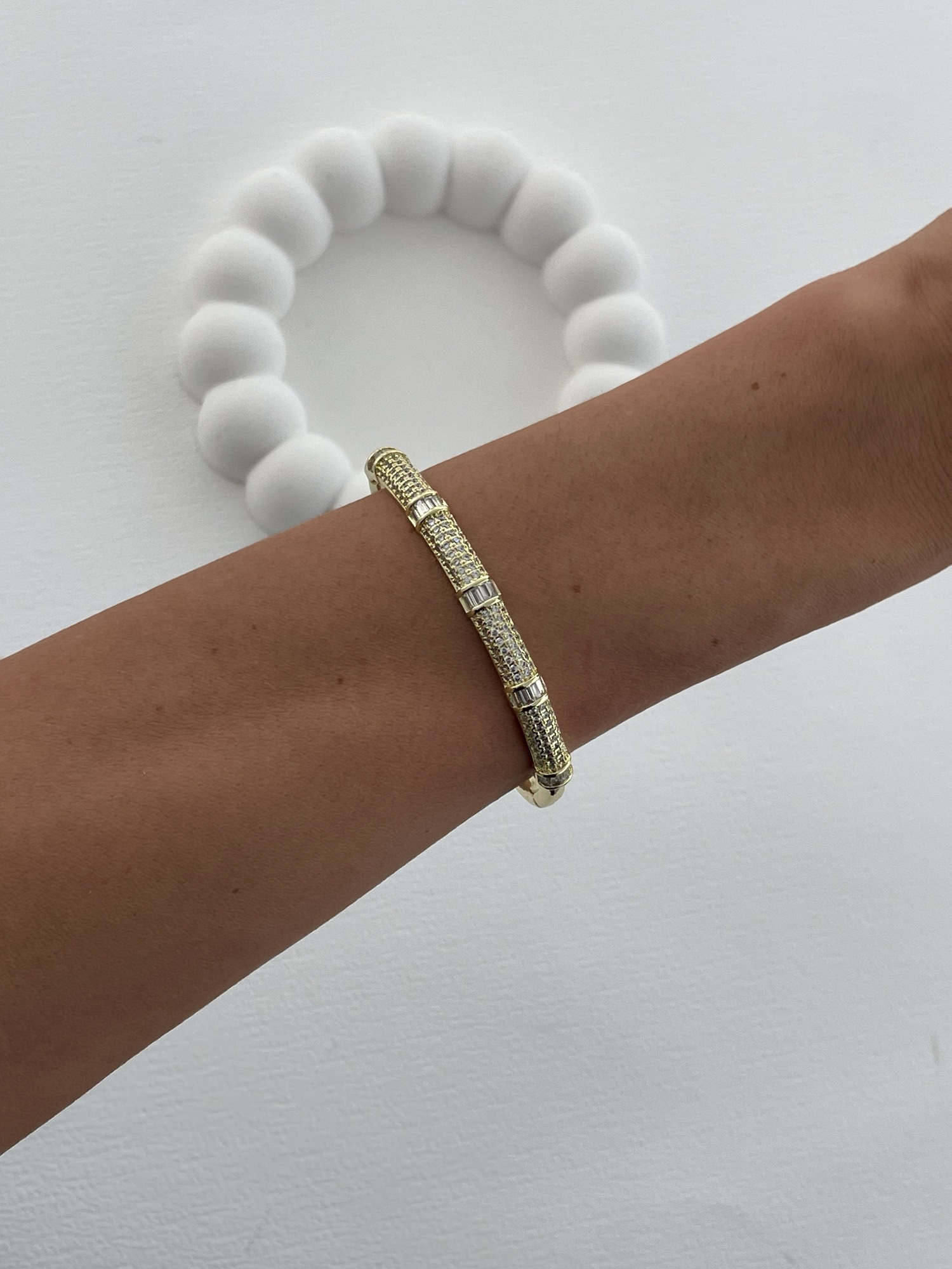 Özel Seri Zirkon&Baget Taş Detay Gold Kelepçe Bileklik