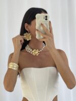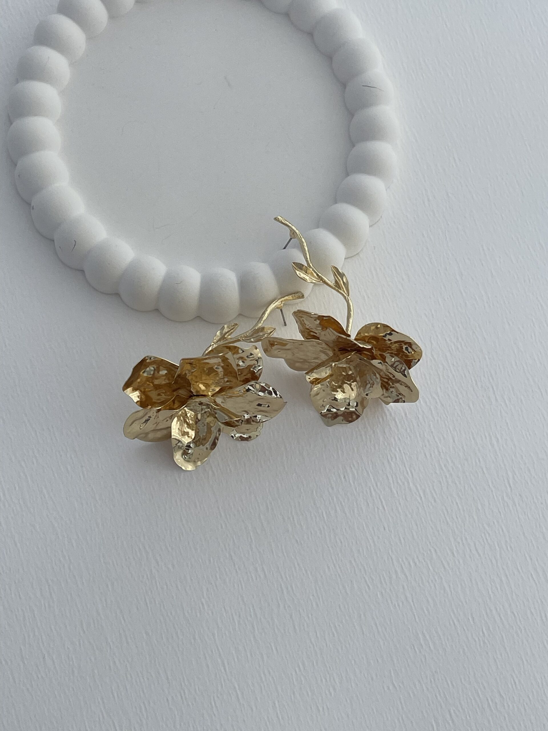 Özel Seri ZR Model Çiçek Tasarım Maksi Boy Gold Küpe