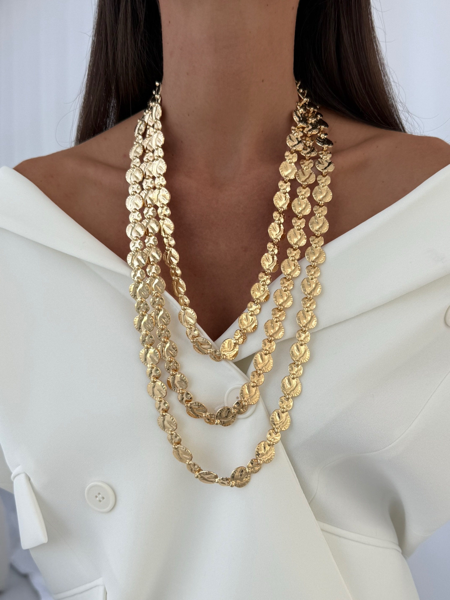 Özel Seri ZR Model Desenli Pul Plaka Gold Üçlü Kolye