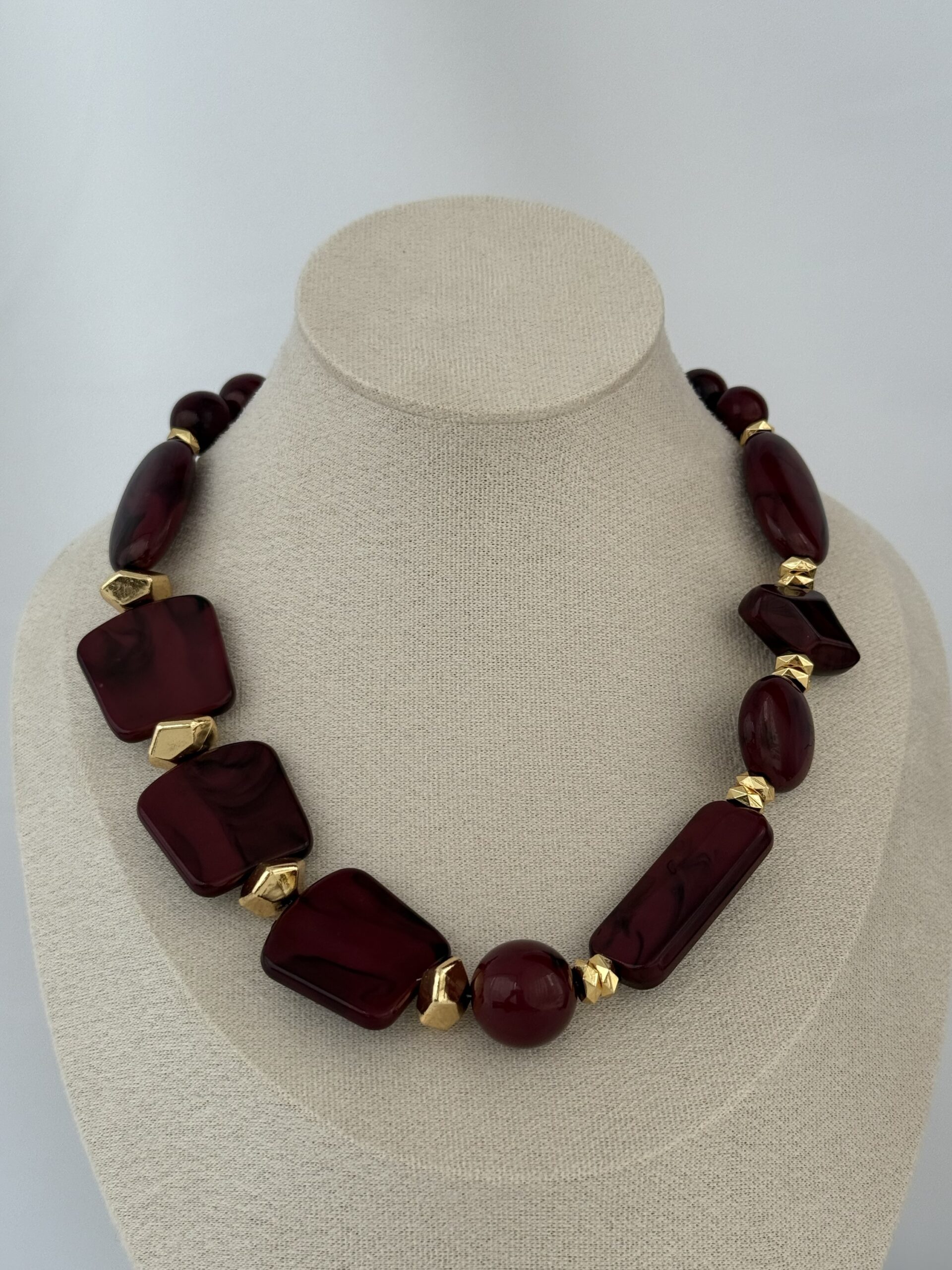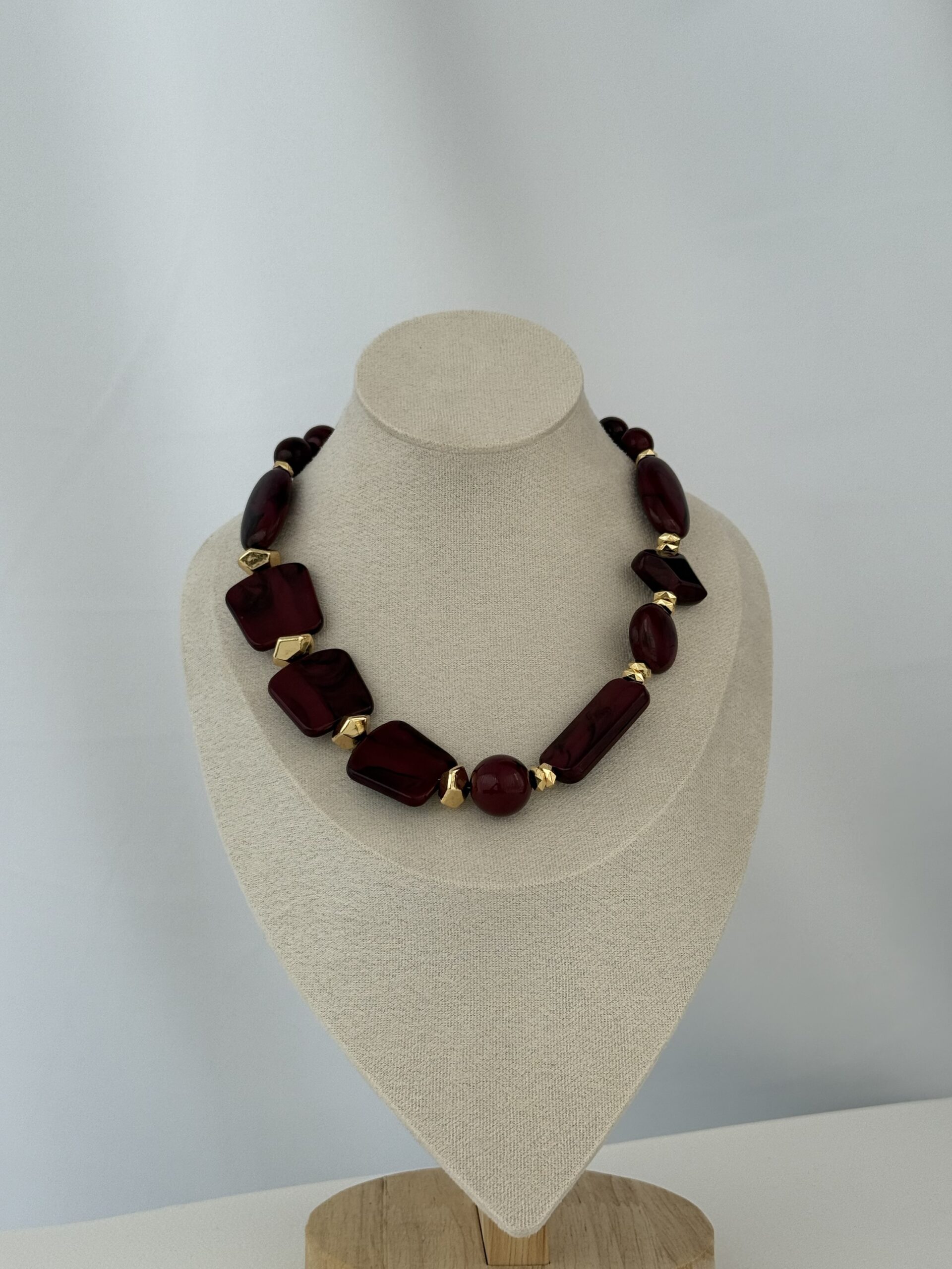 Özel Seri ZR Model Geometrik Tasarım Gold Detay Bordo Kolye