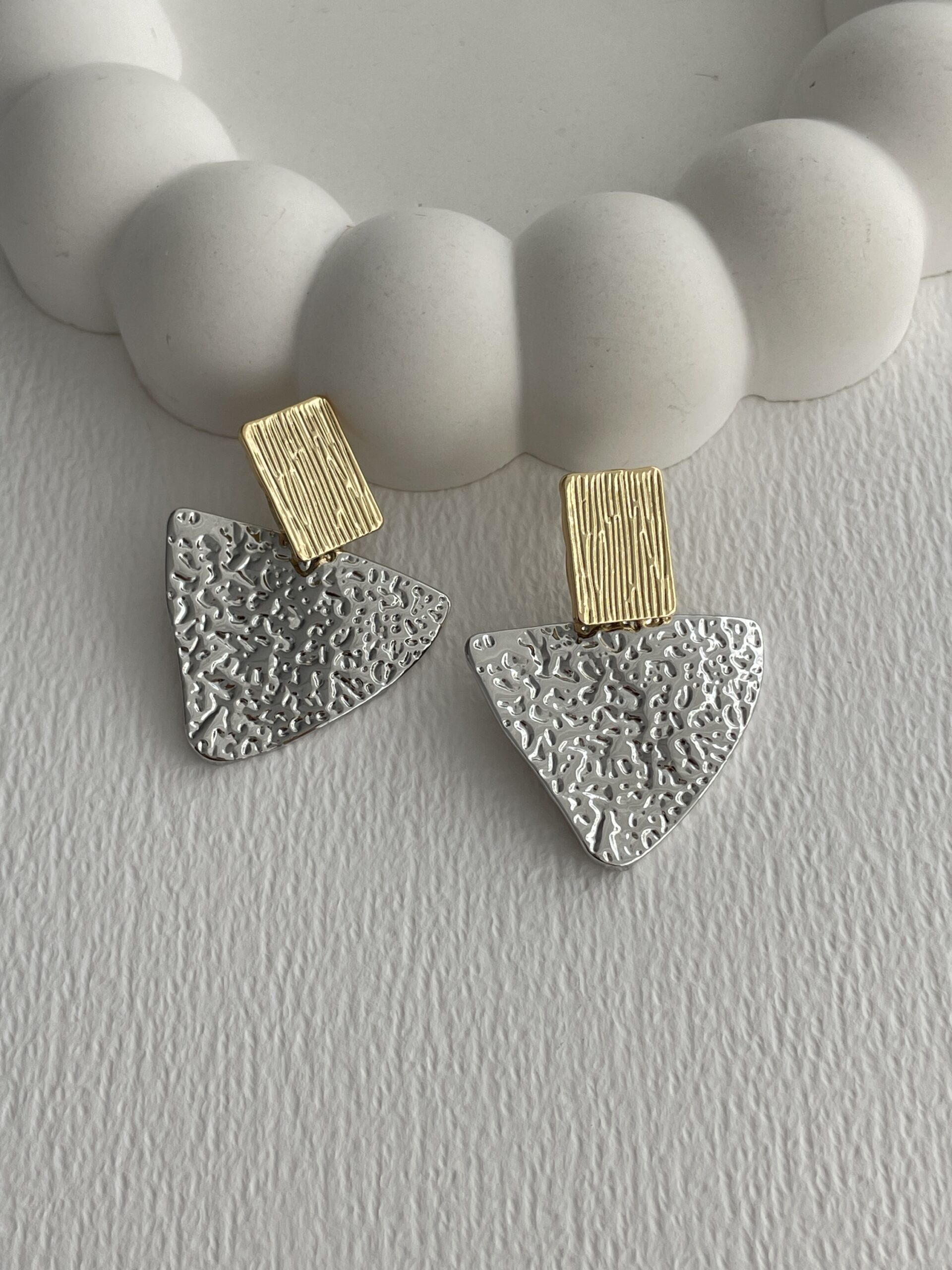 Özel Seri Gold & Gümüş Üçgen Küpe