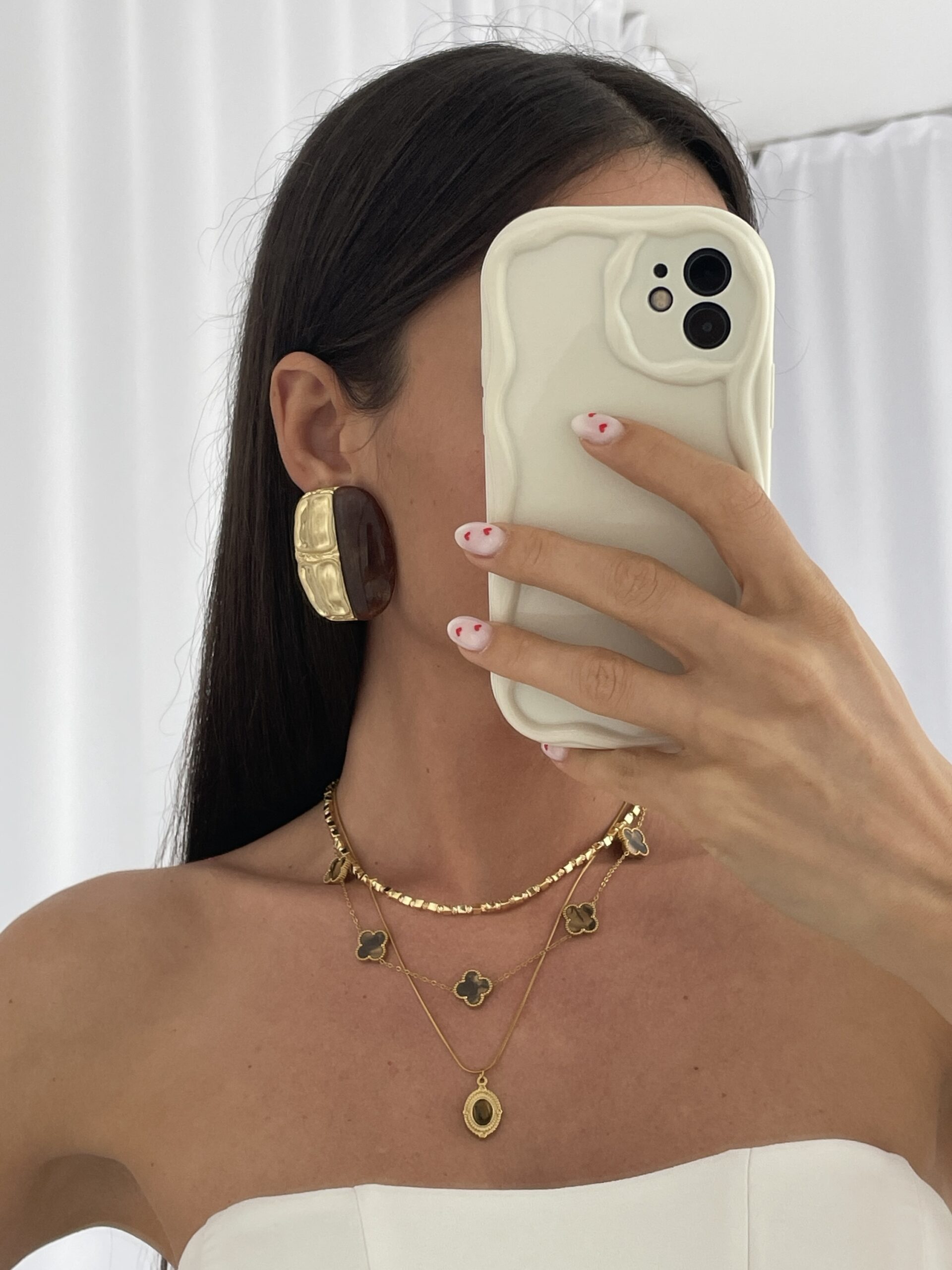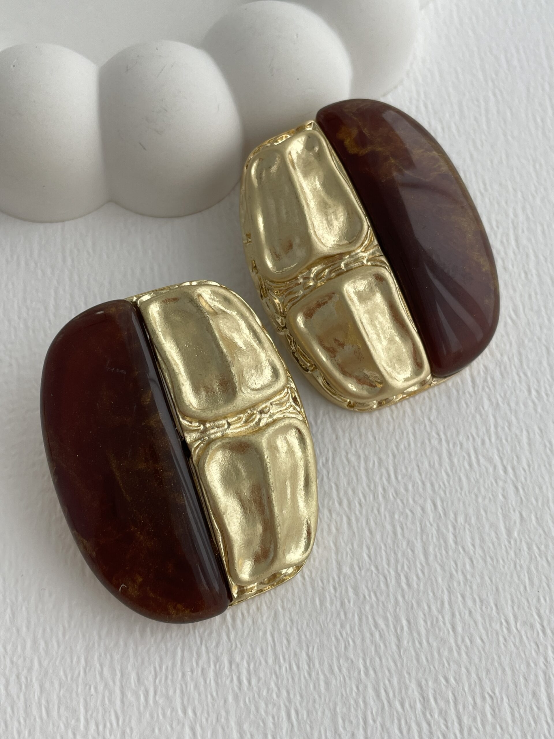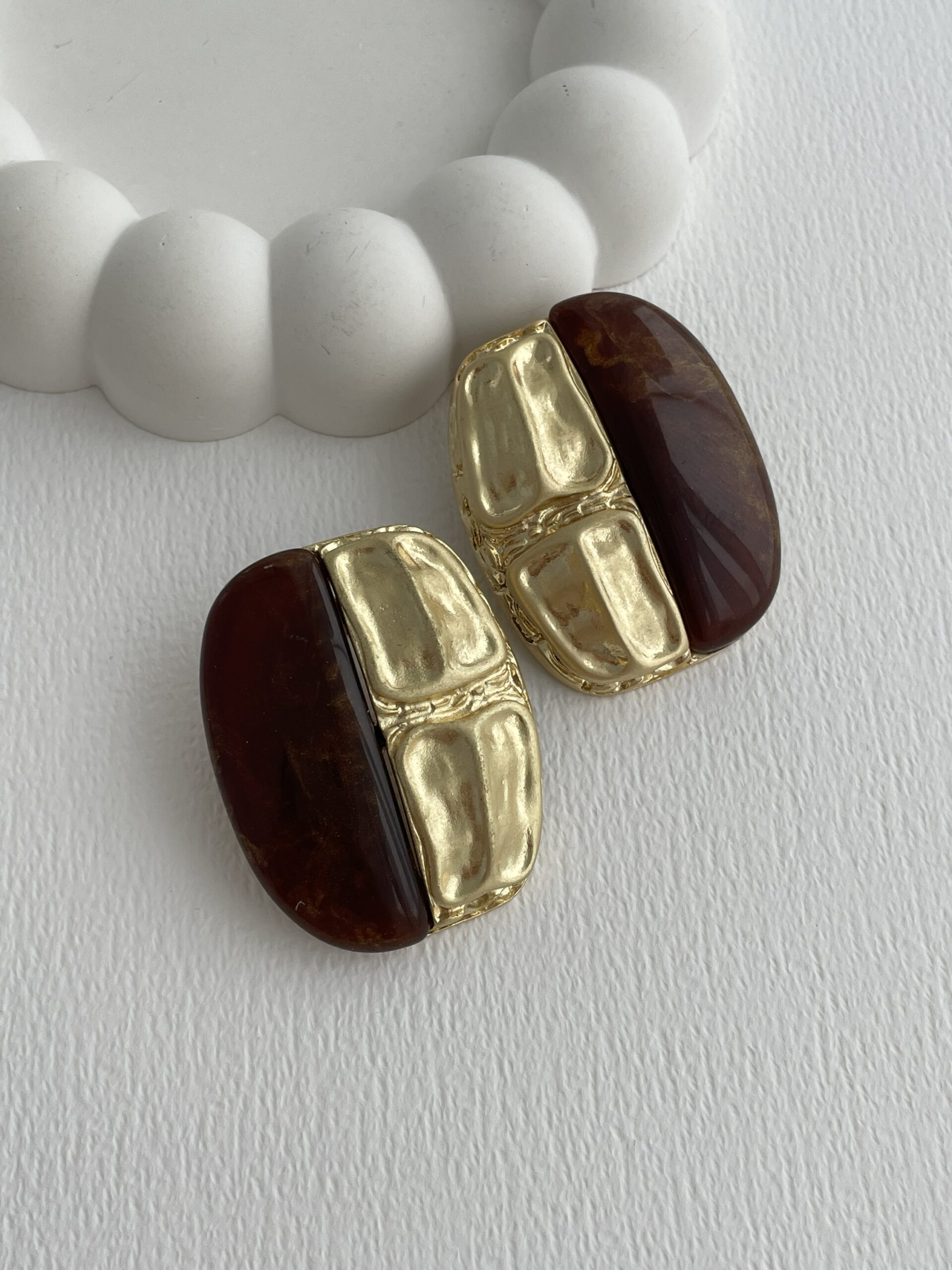 Özel Seri Marka Model Gold & Kahverengi Tasarım Küpe