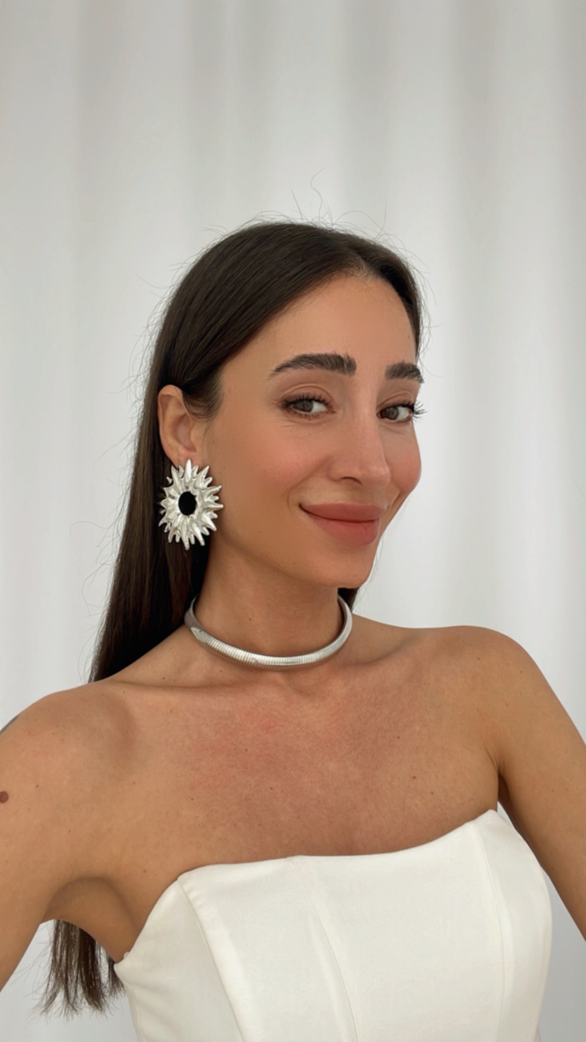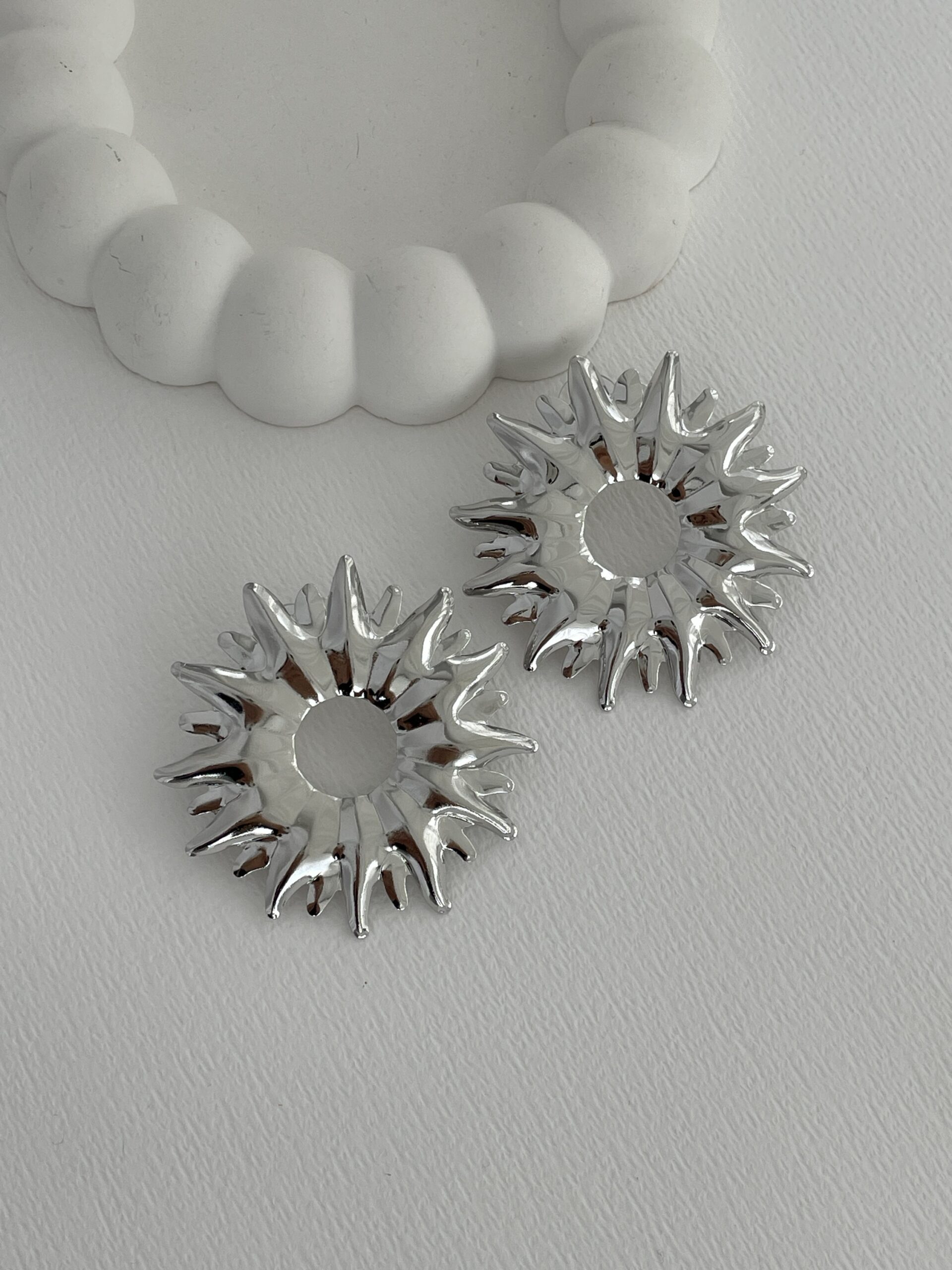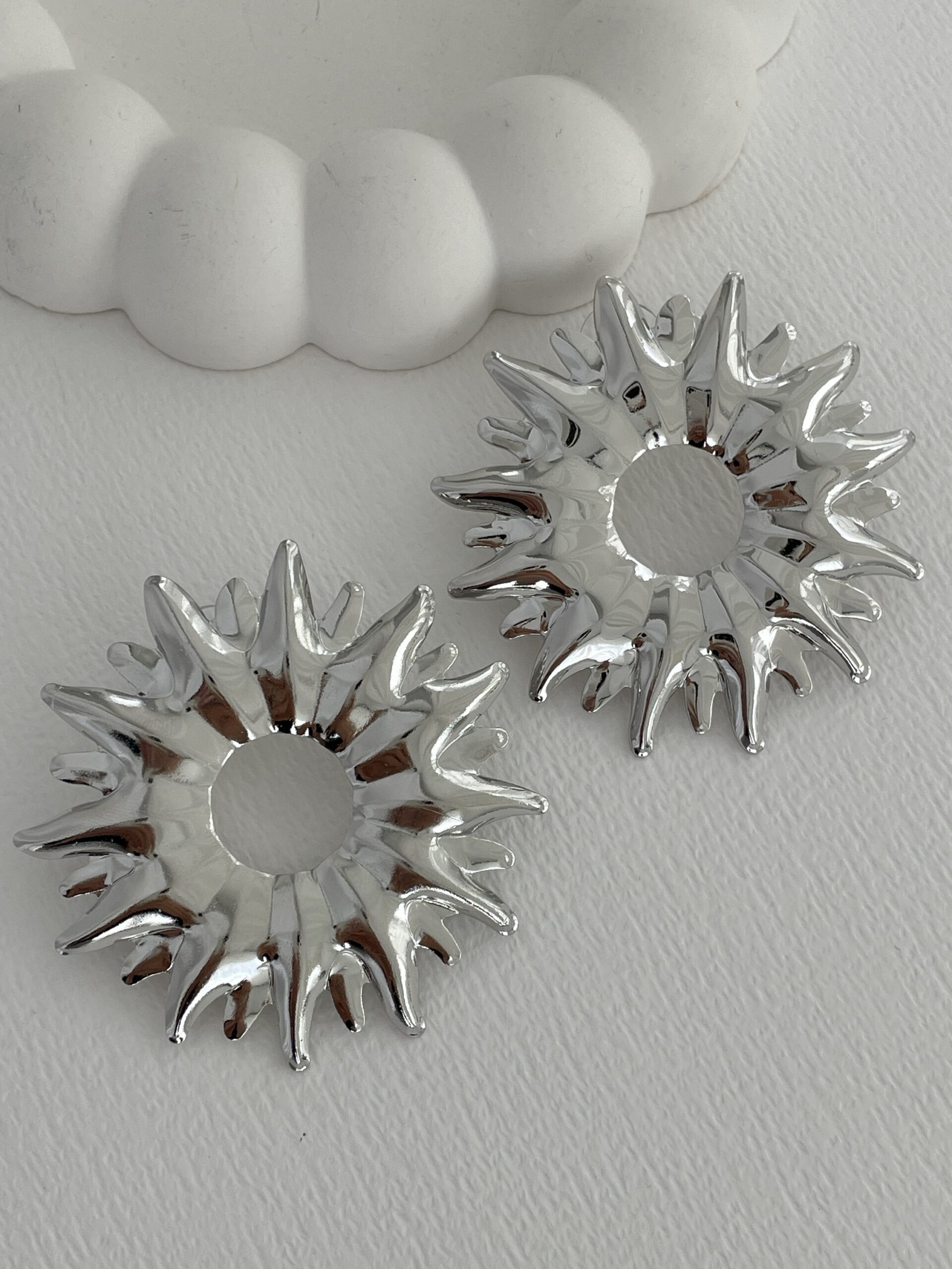 Özel Seri Marka Model Güneş Tasarım Gümüş Büyük Küpe