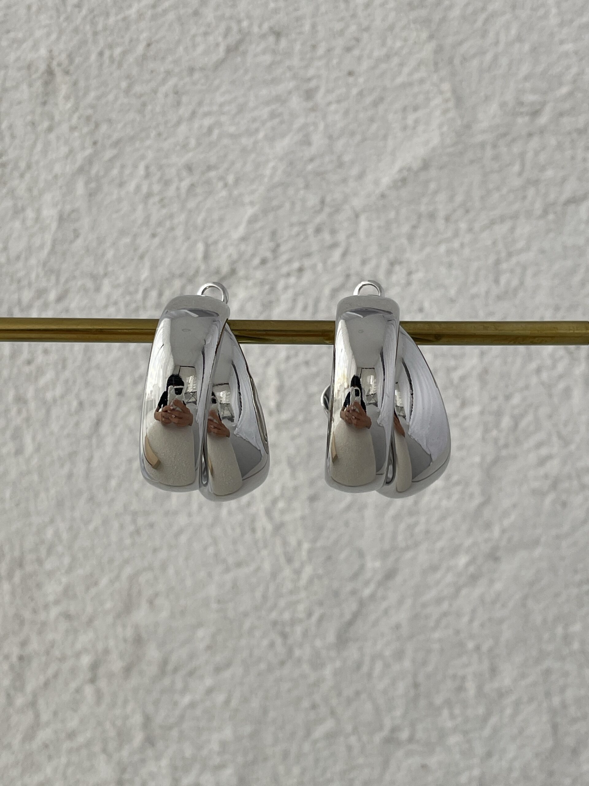 Özel Seri Marka Model İkili Halka Tasarım Gümüş Küpe