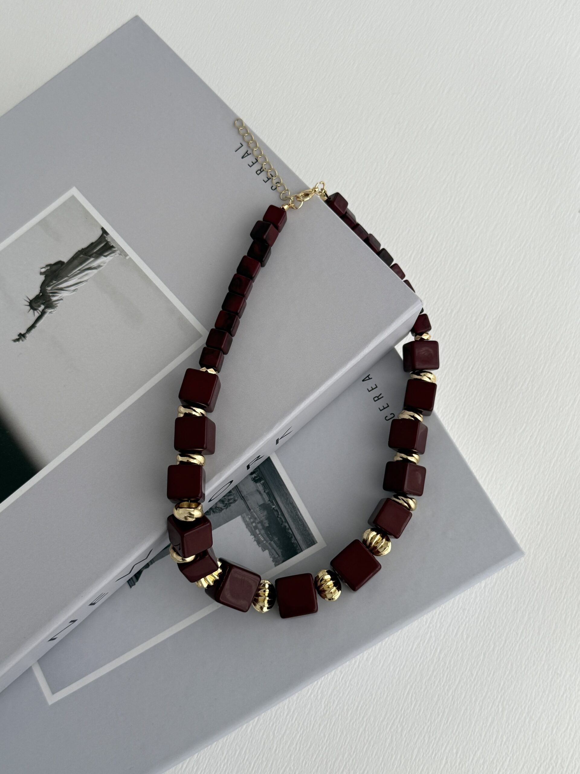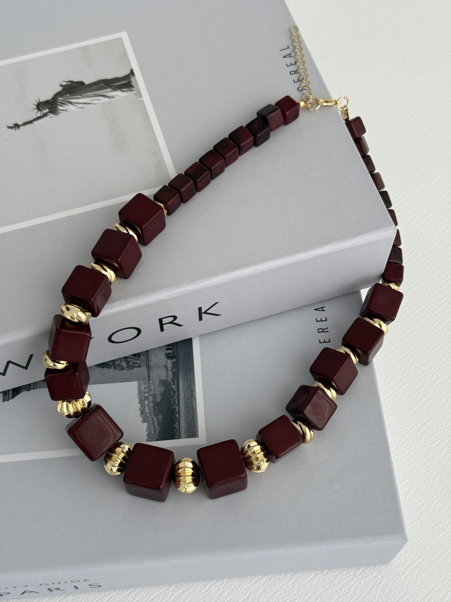 Özel Seri Küp Tasarım Kare Uç Detay Bordo Kolye