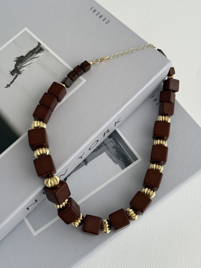 Özel Seri Küp Tasarım Kare Uç Detay Kahverengi Kolye