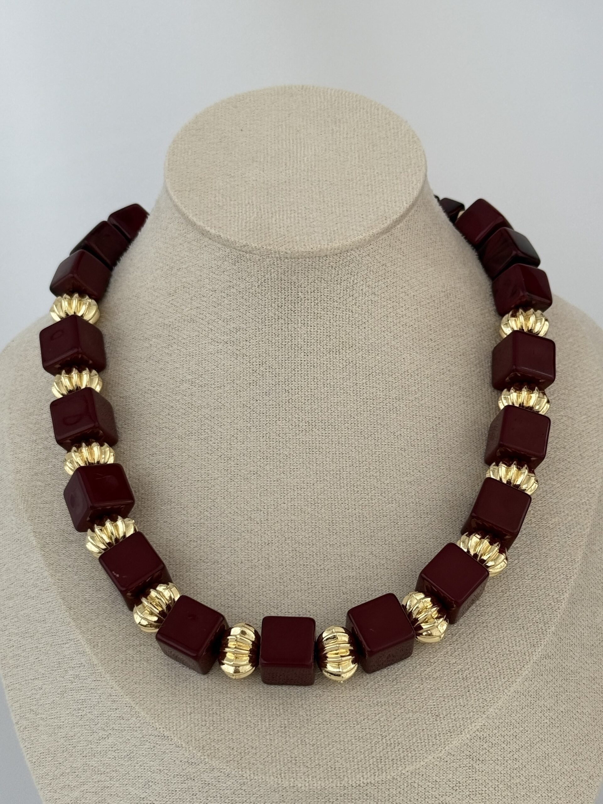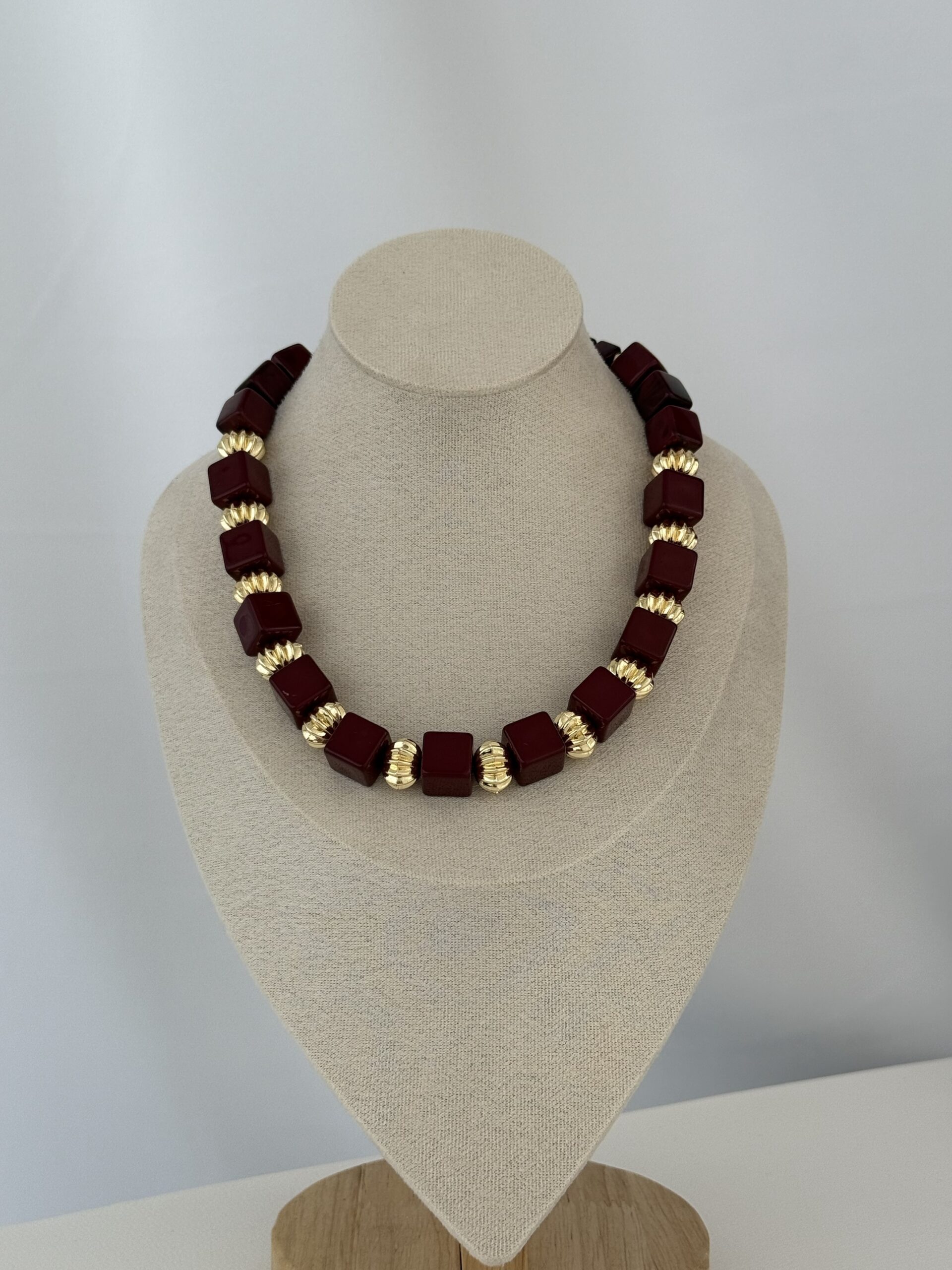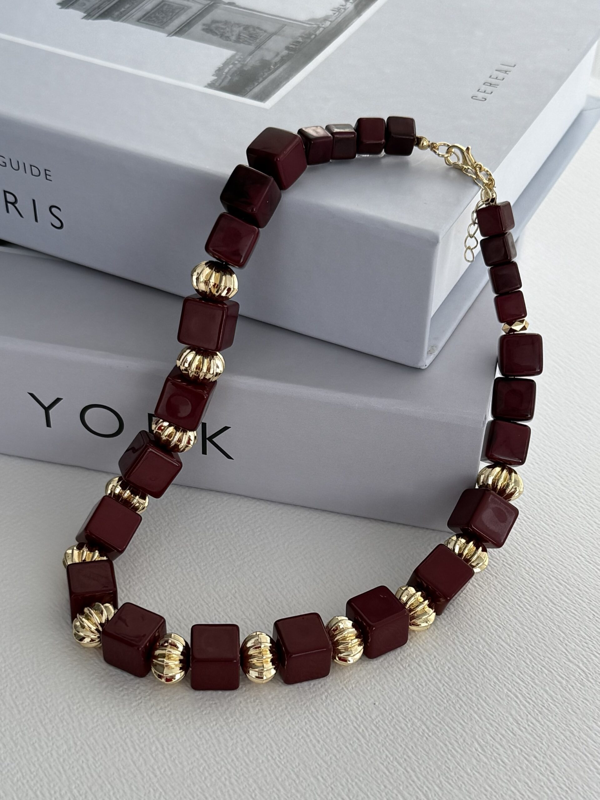 Özel Seri Küp Tasarım Kare Uç Detay Bordo Kolye