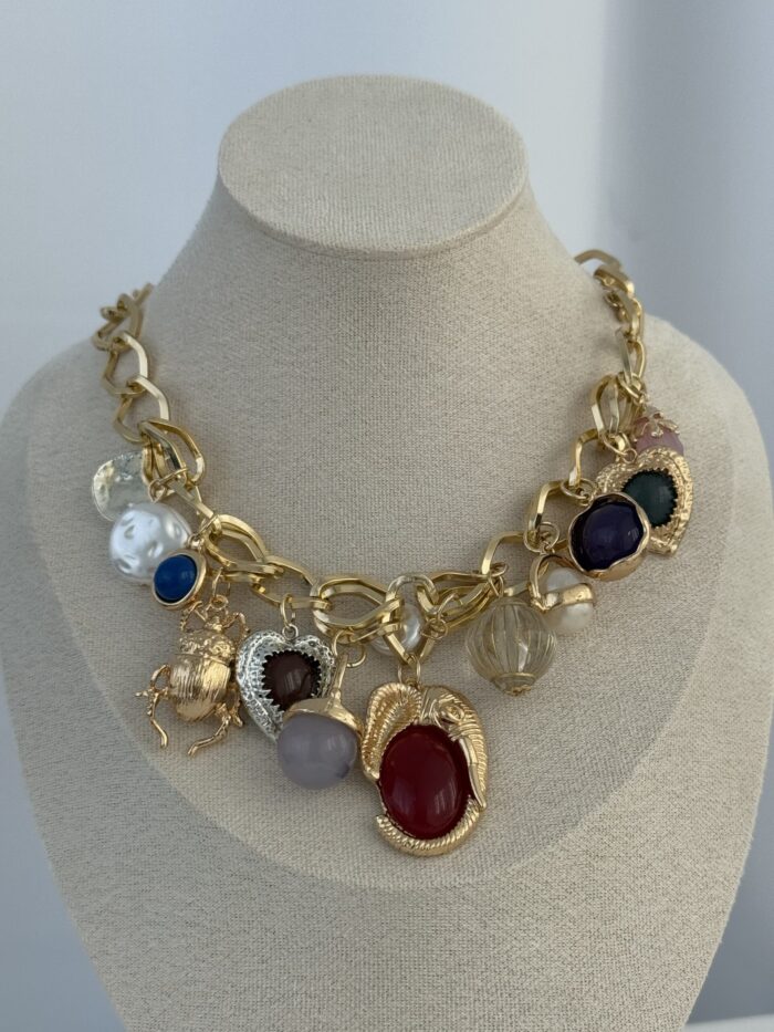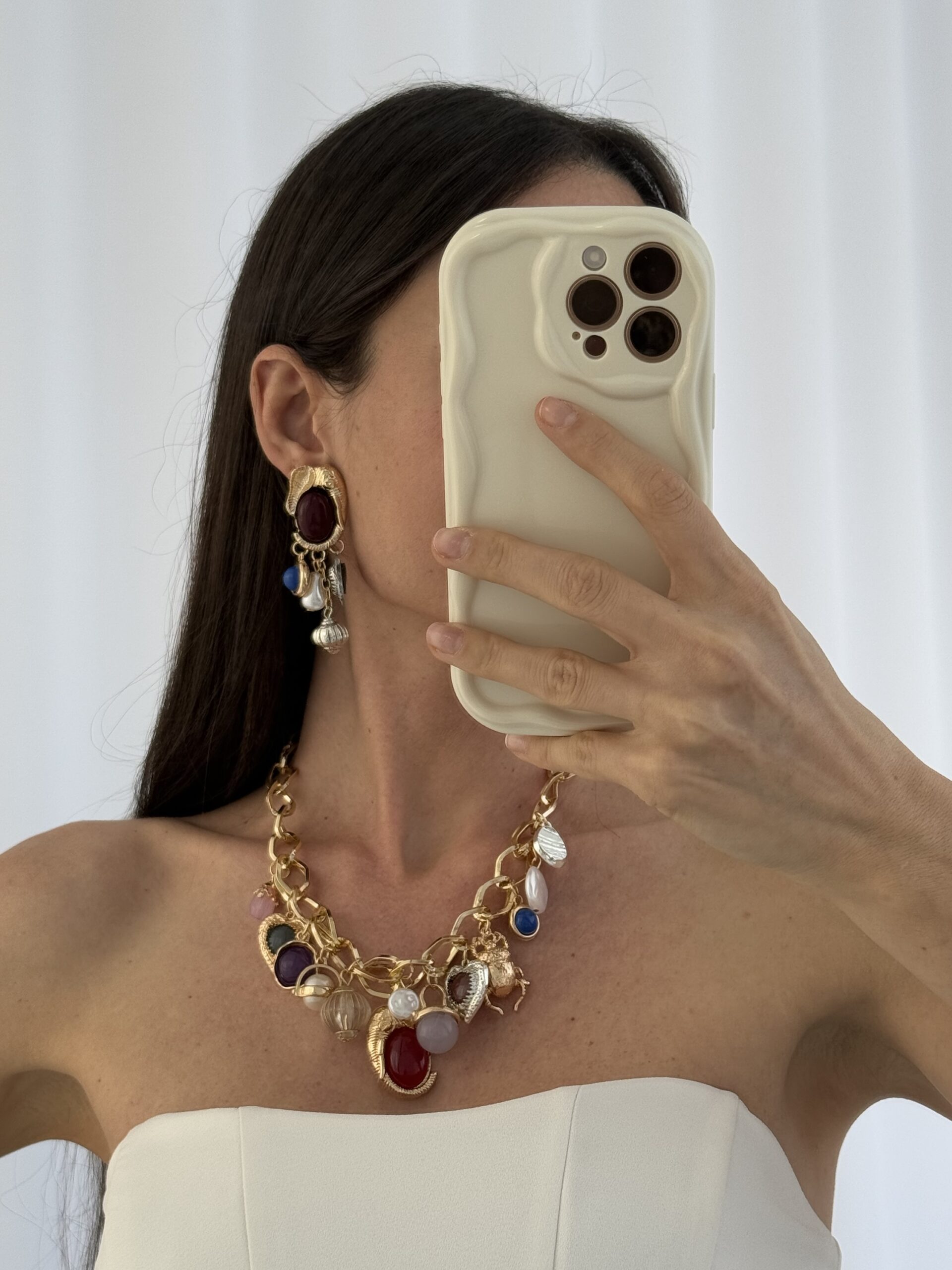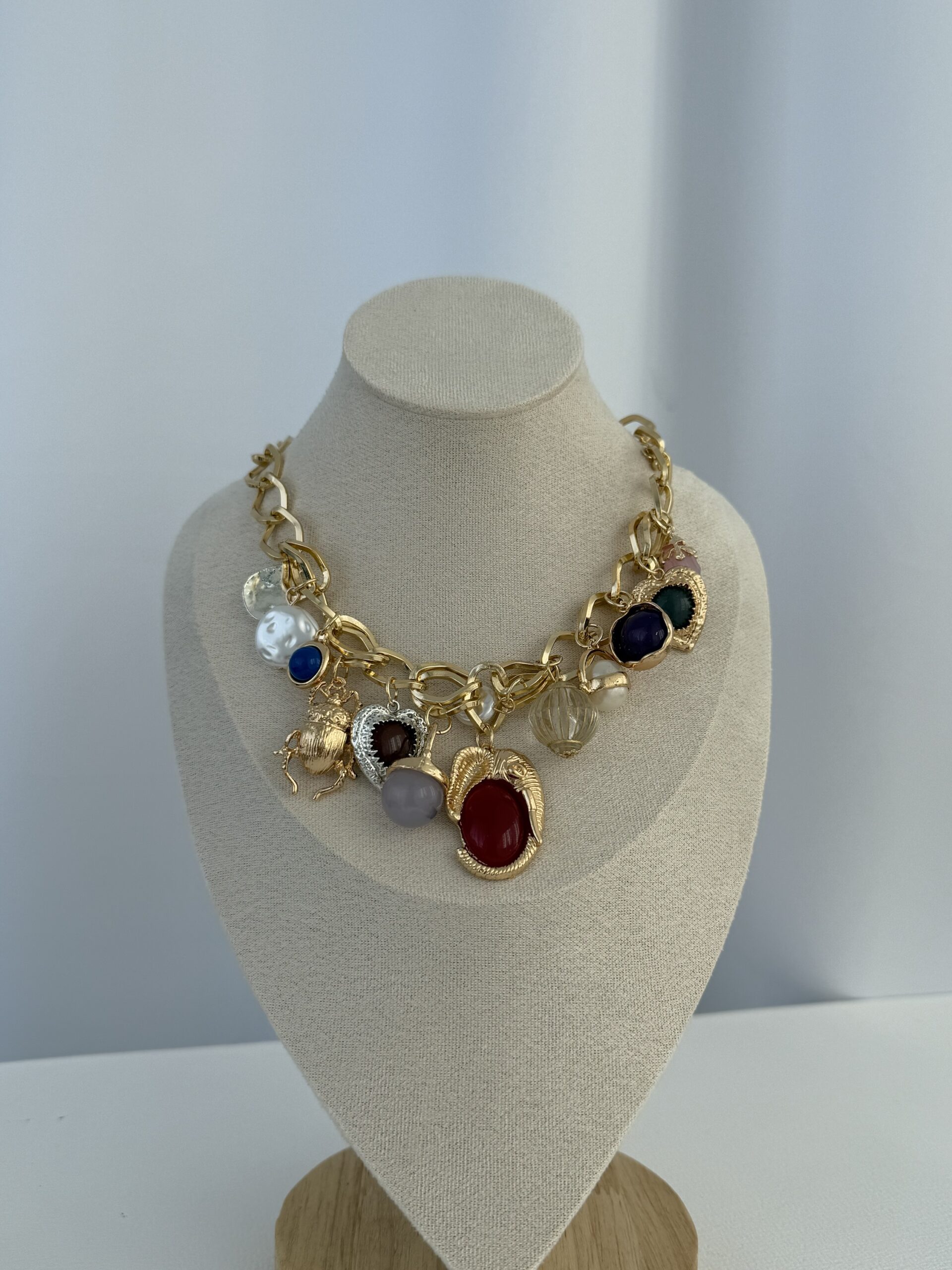 Özel Seri ZR Model Renkli Charm Detay Gold Kolye