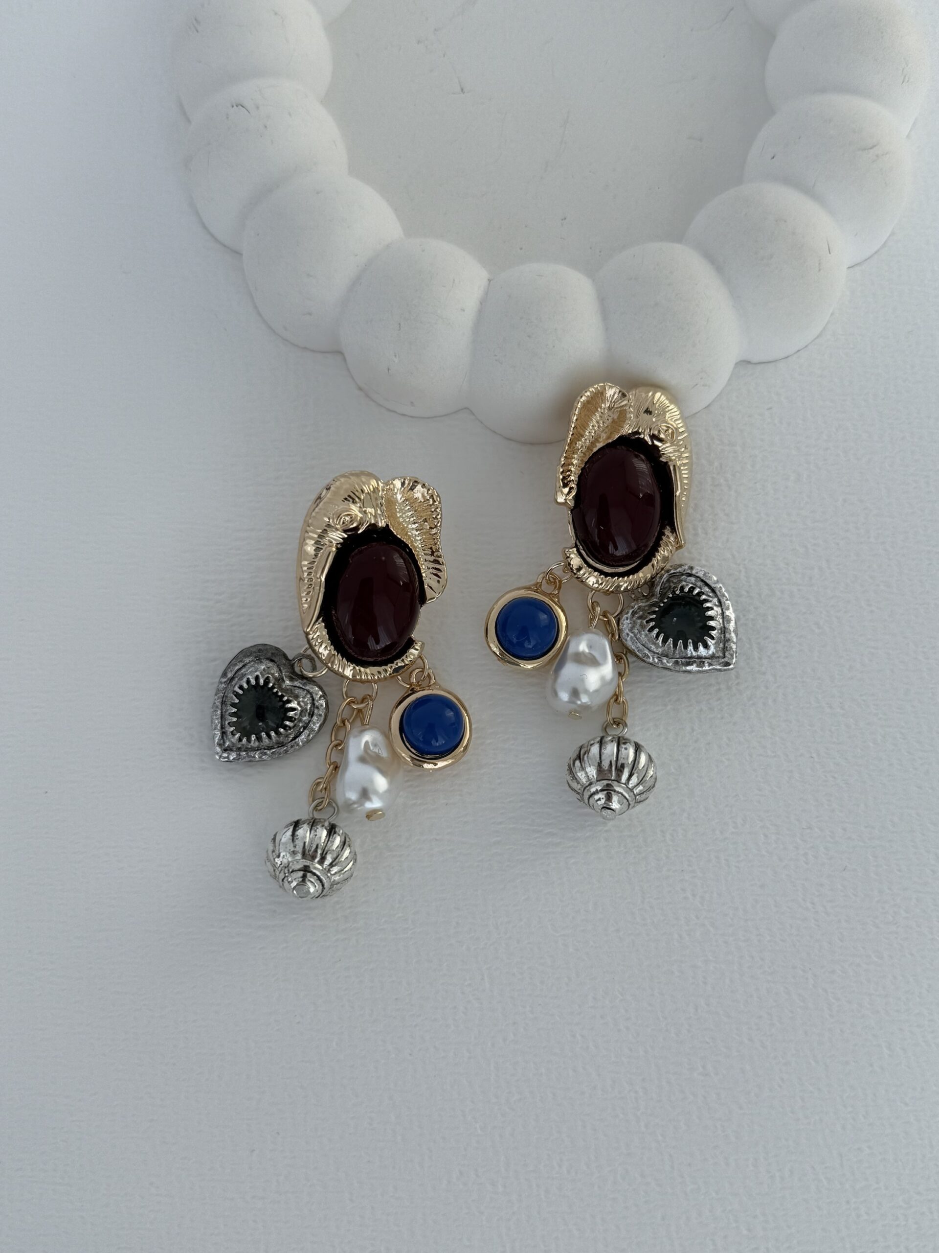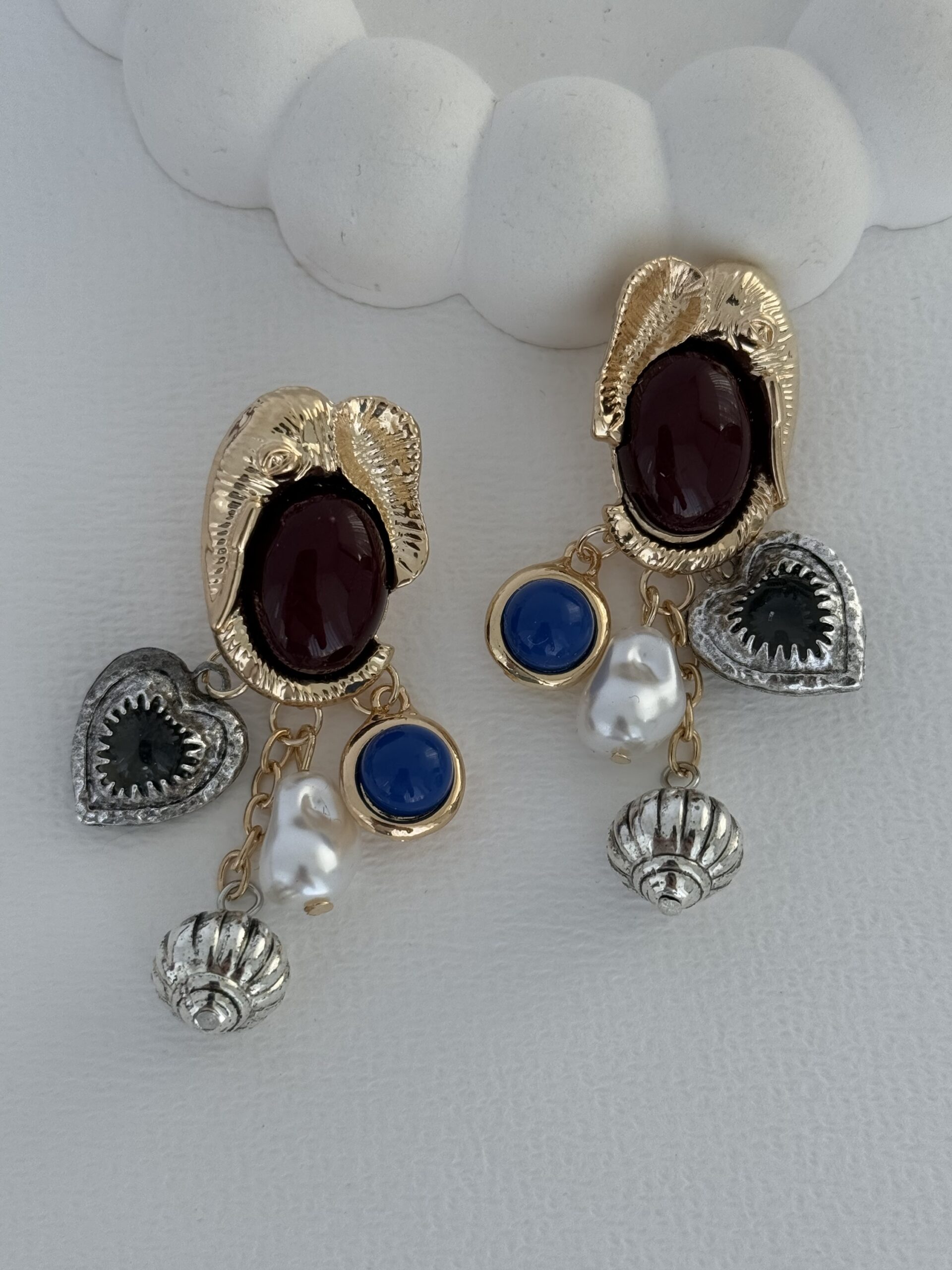 Özel Seri ZR Model Renkli Charm Detay Gold Küpe