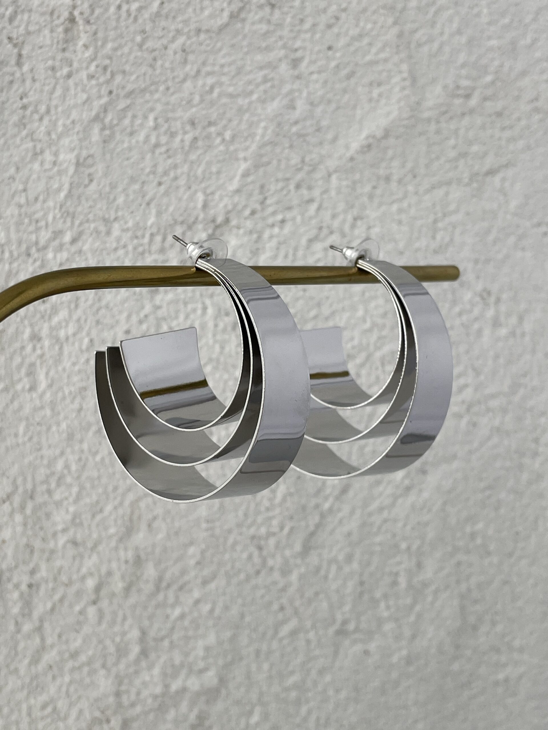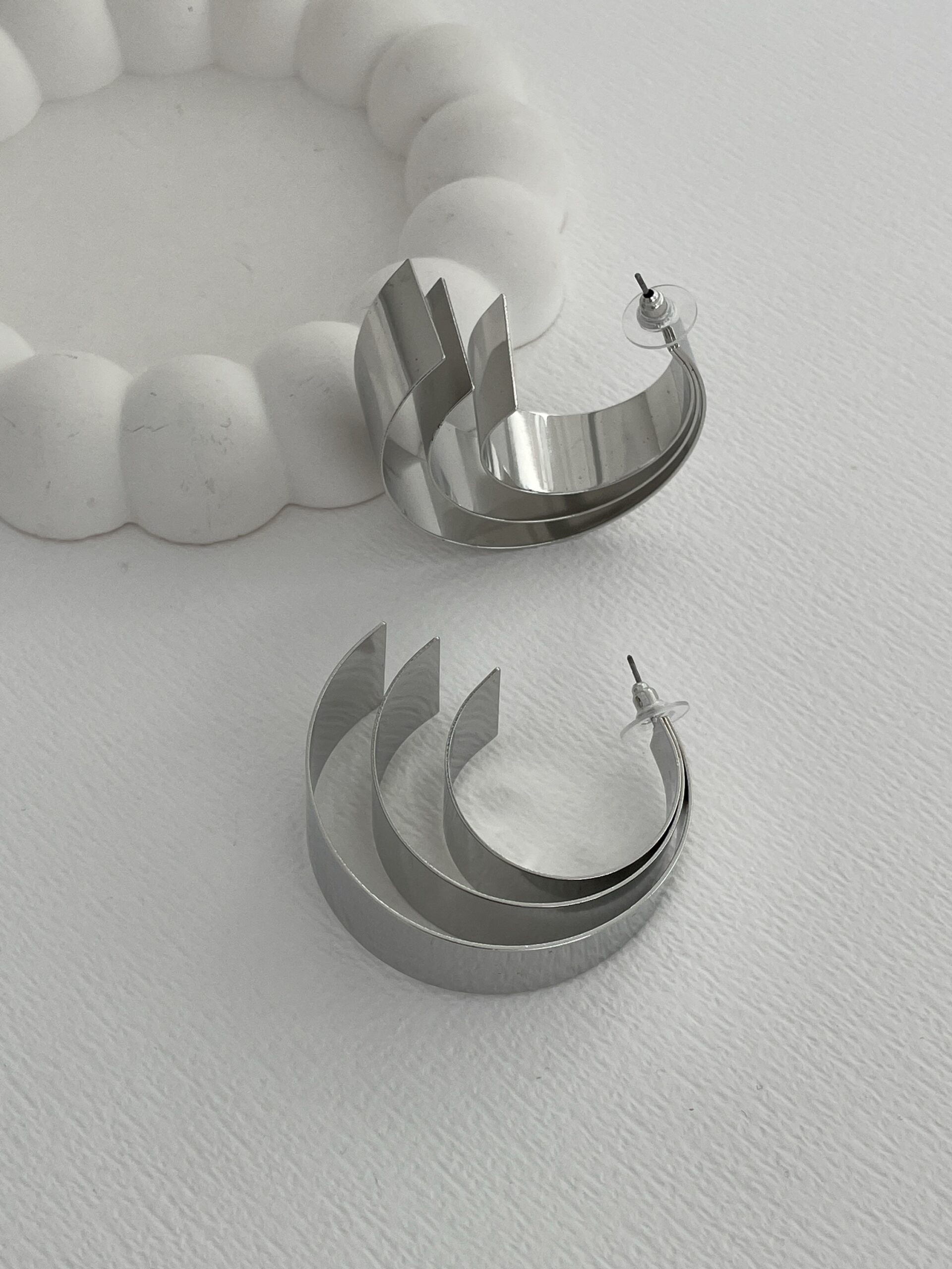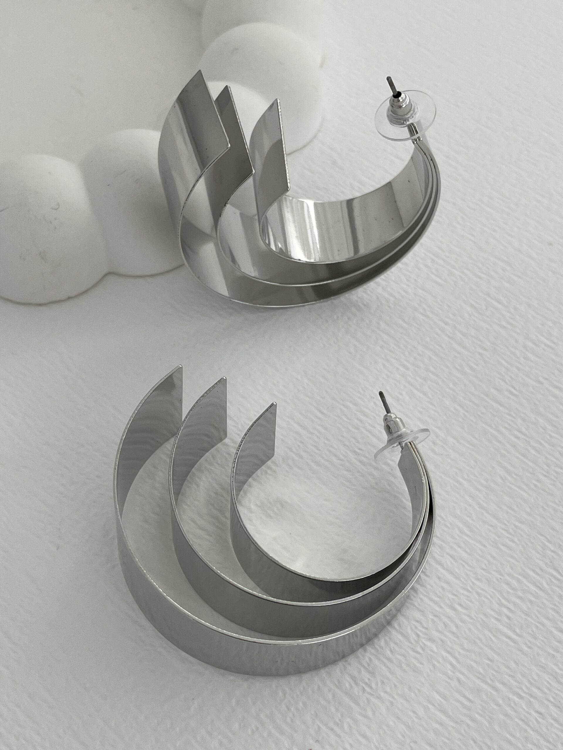 Özel Seri Marka Model Üçlü Plaka Maksi Boy Gümüş Küpe