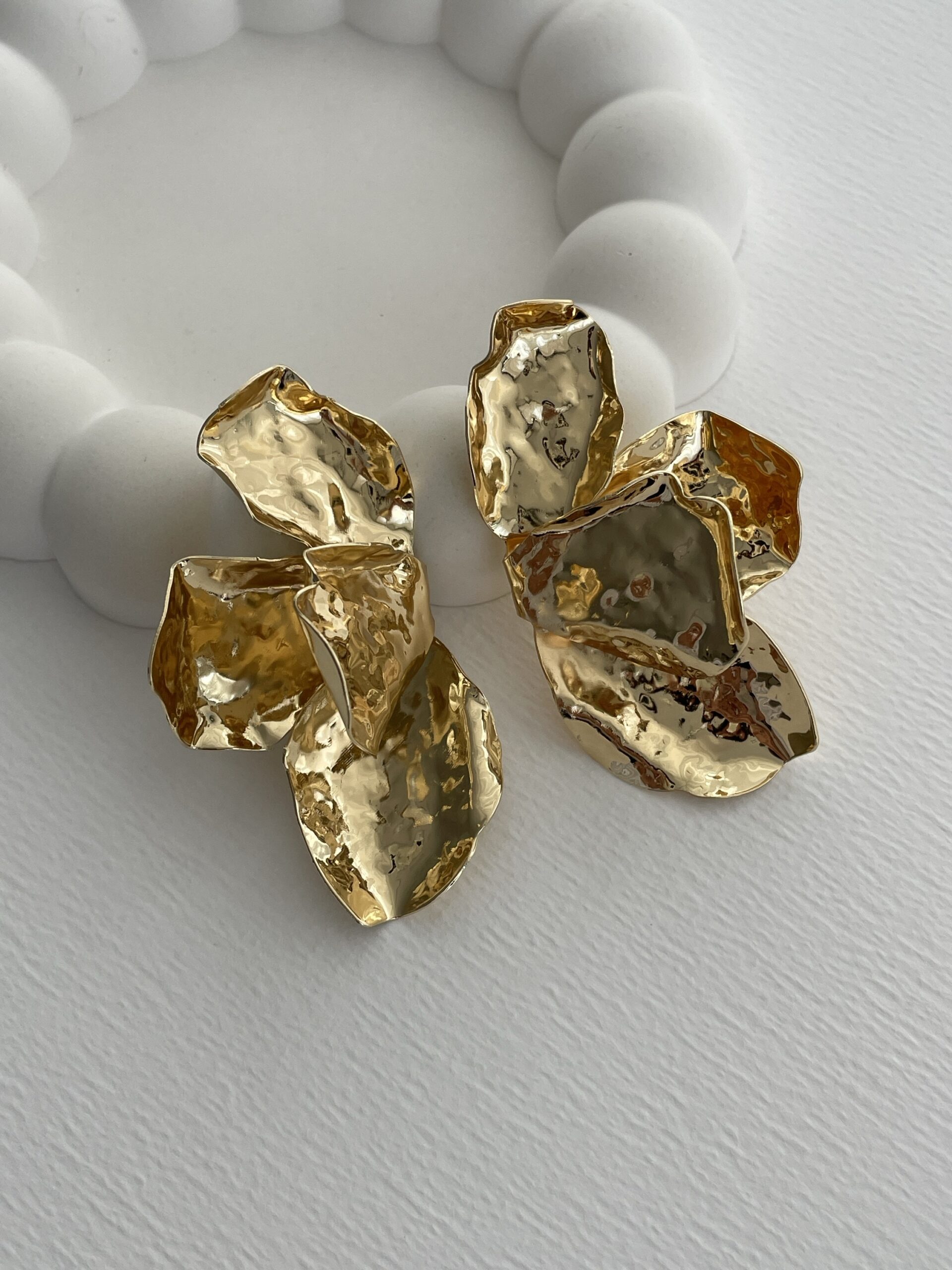 Özel Seri Marka Model Yaprak Tasarım Büyük Gold Küpe