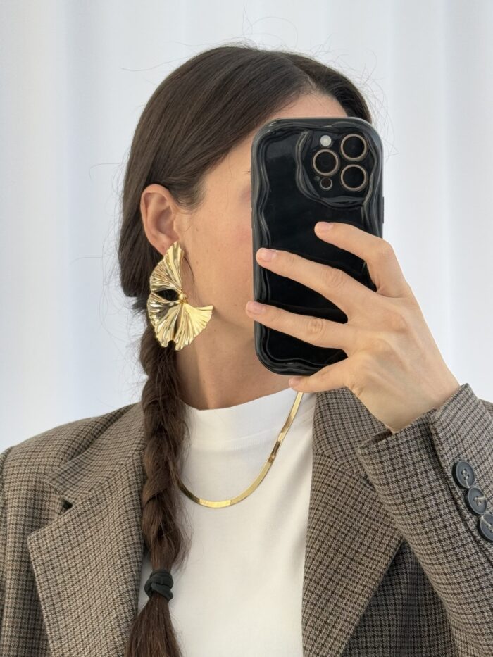 Özel Seri ZR Üçlü Yaprak Tasarım Büyük Gold Küpe