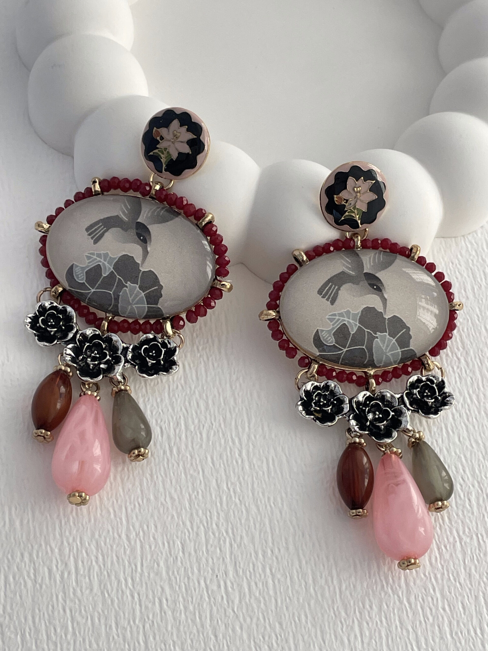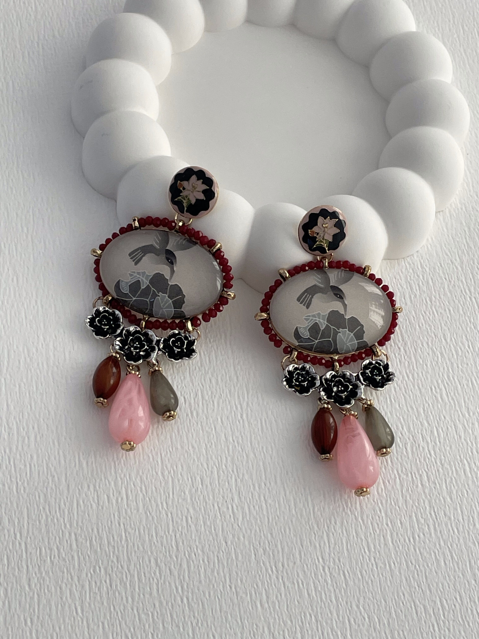 Özel Seri ZR Vintage Tasarım Gül Detay Sallantılı Renkli Küpe