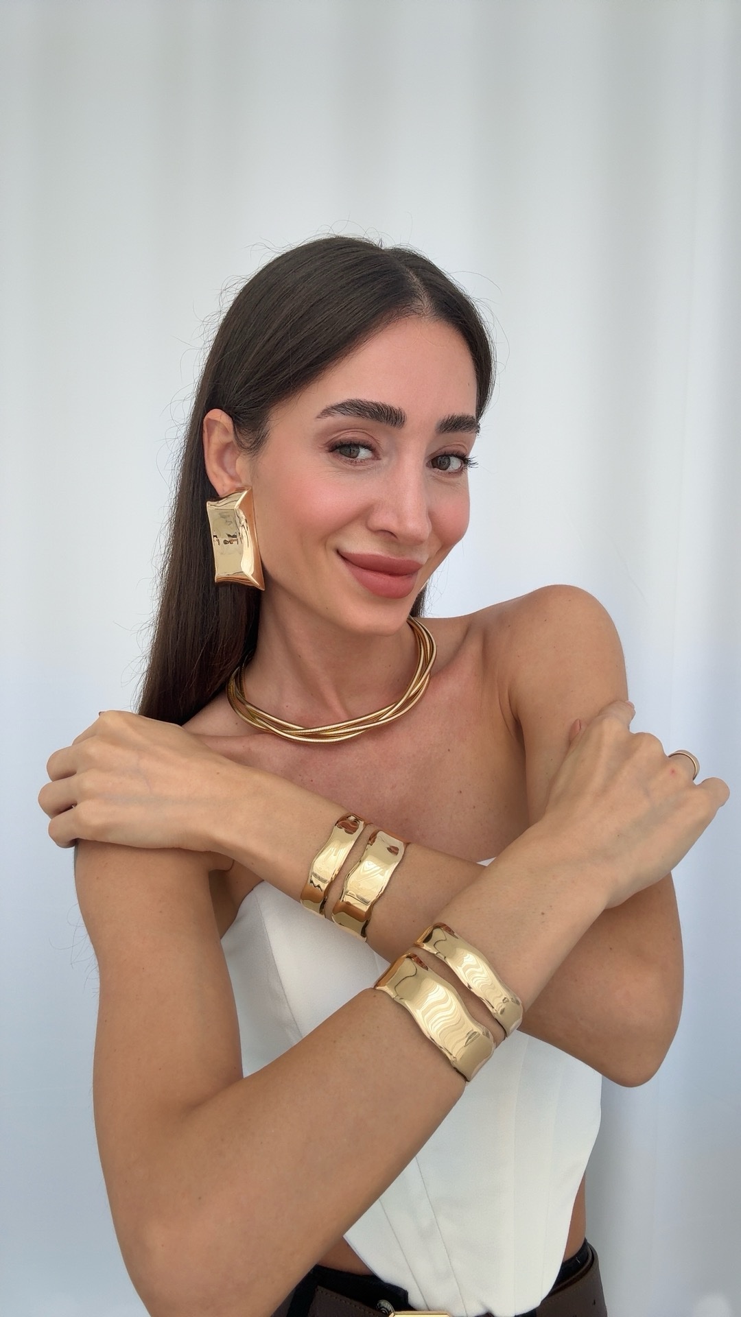 Özel Seri Marka Moldel İkili Asimetrik Kıvrım Gold Bileklik