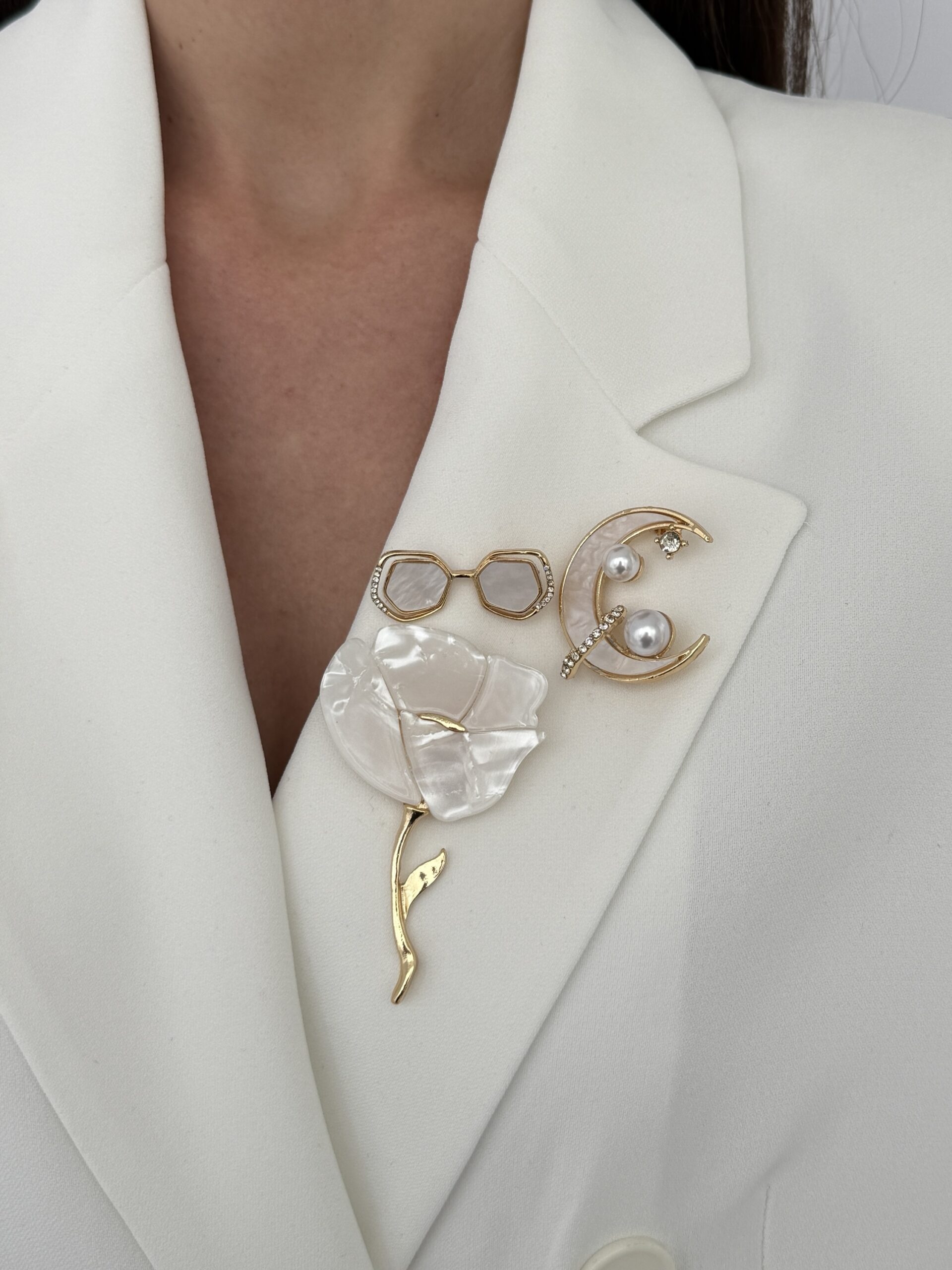 Özel Seti Beyaz Gül Tasarım Gold Broş