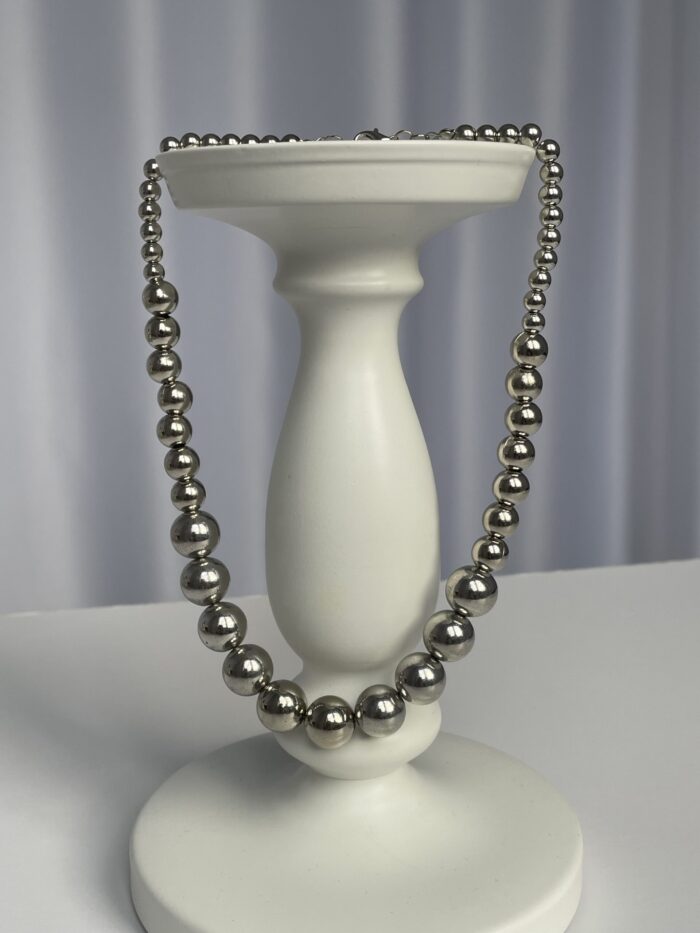 LP Özel Üretim Metalik Gümüş Top Kolye