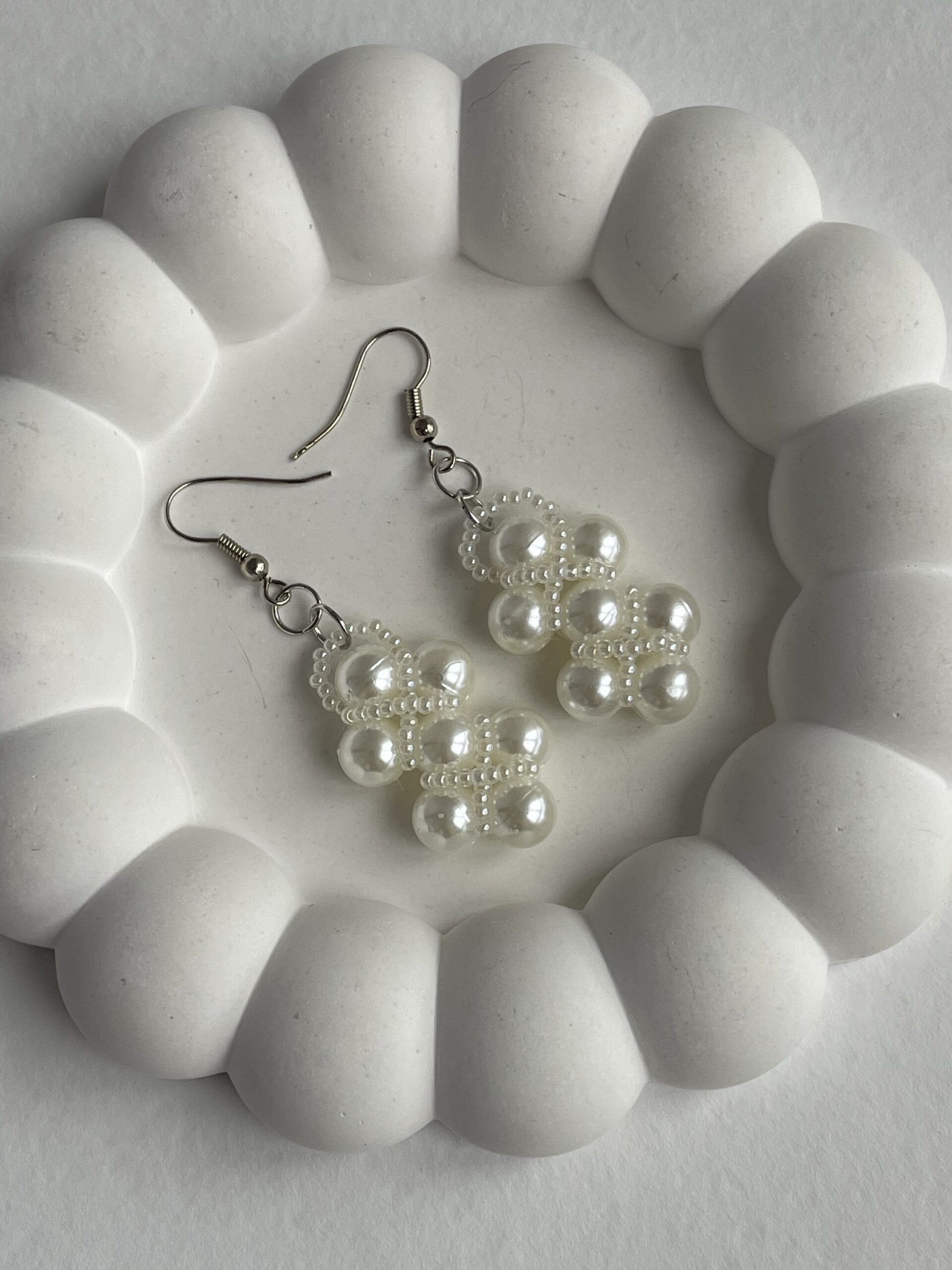 LP Özel Üretim Örgü Tasarım İnci Küpe