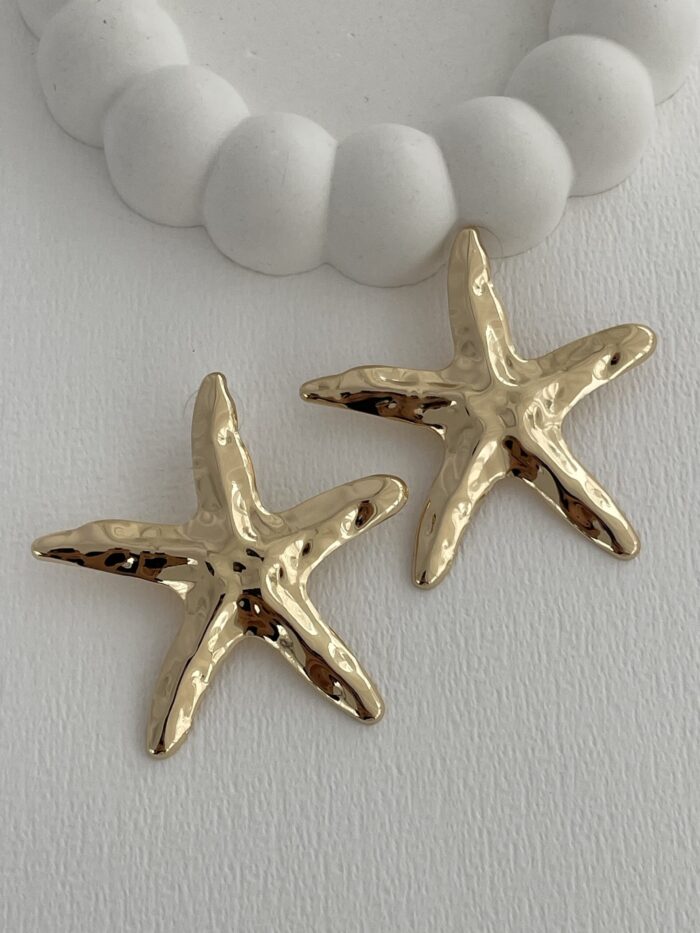 Özsel Seri Desenli Deniz Yıldızı Tasarım Gold Küpe