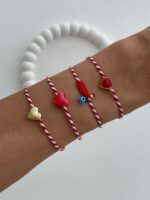 “Pembe Kalp Tasarım Kırmızı Beyaz Marteniçka İp Bileklik” için yorum yapan ilk kişi siz olun