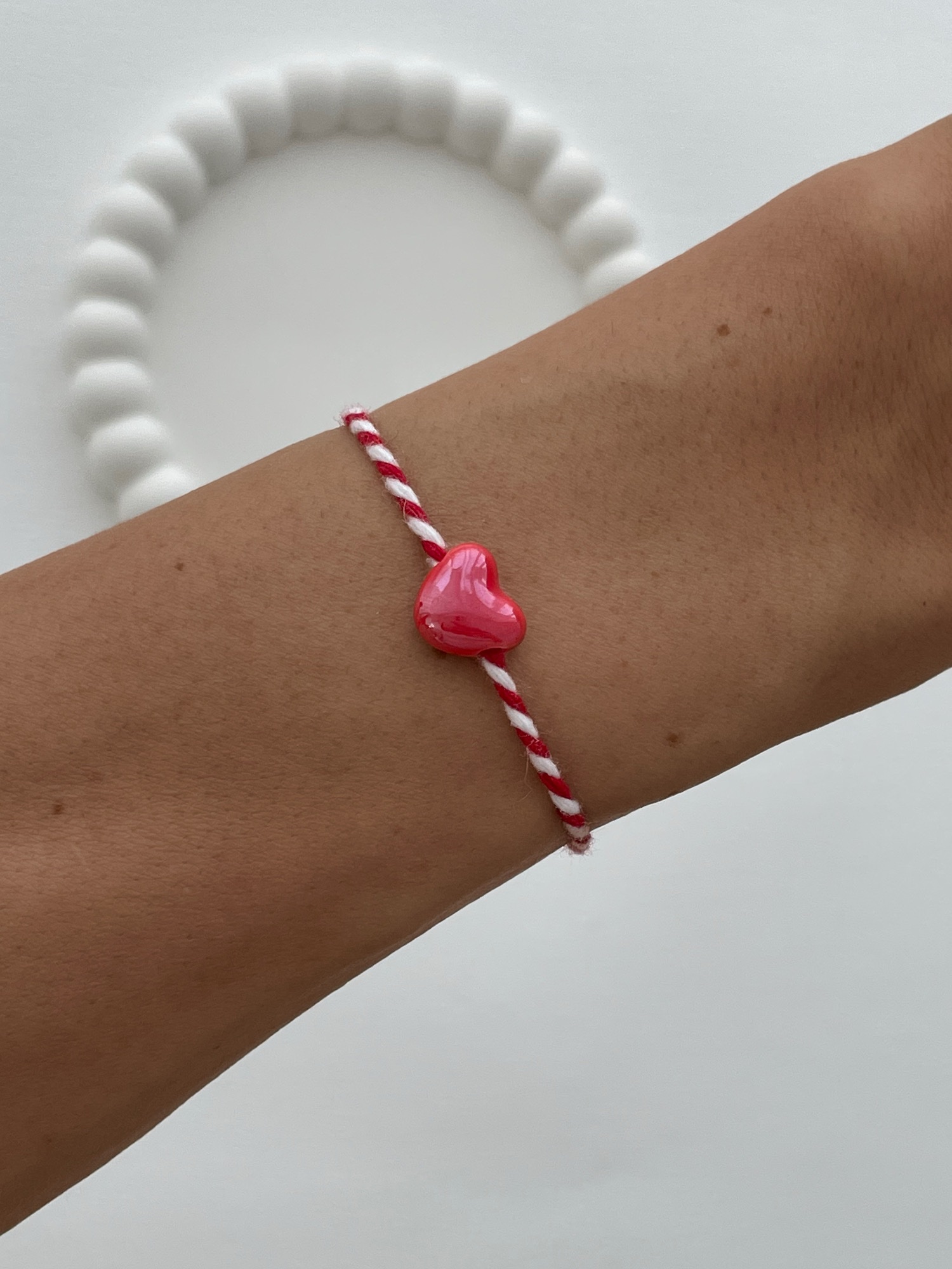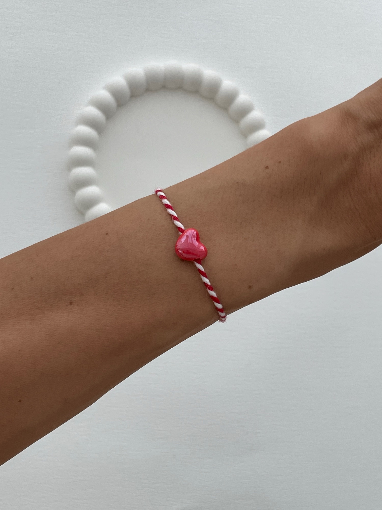 Pembe Kalp Tasarım Kırmızı Beyaz Marteniçka İp Bileklik