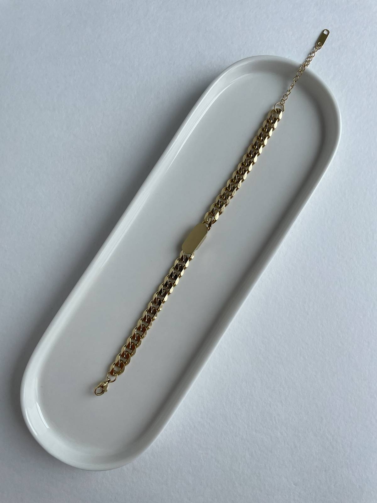 Plaka Detaylı Çelik Gurmet Zincir Bileklik
