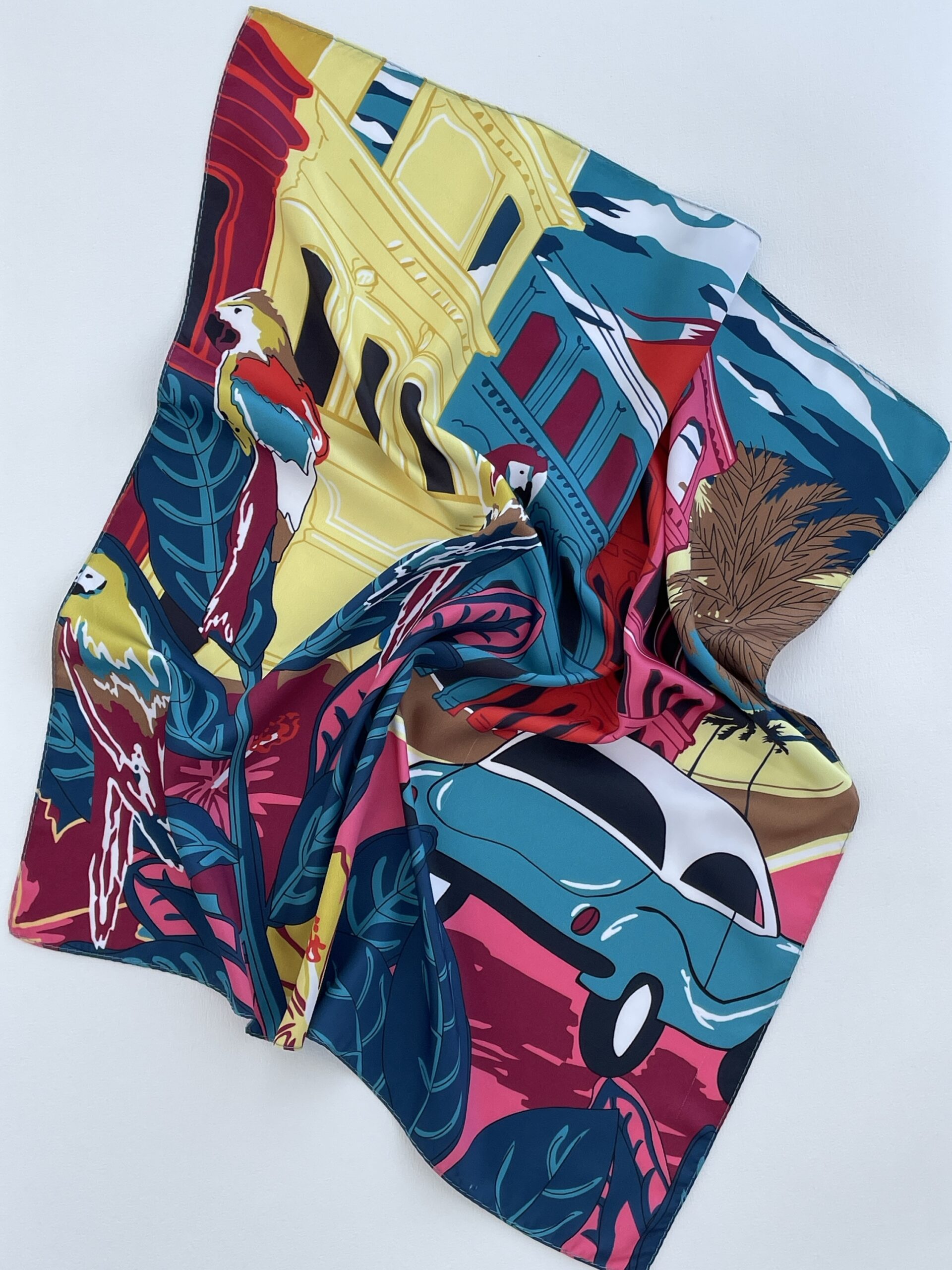 Renkli Şehir Görünüm Saten Fular