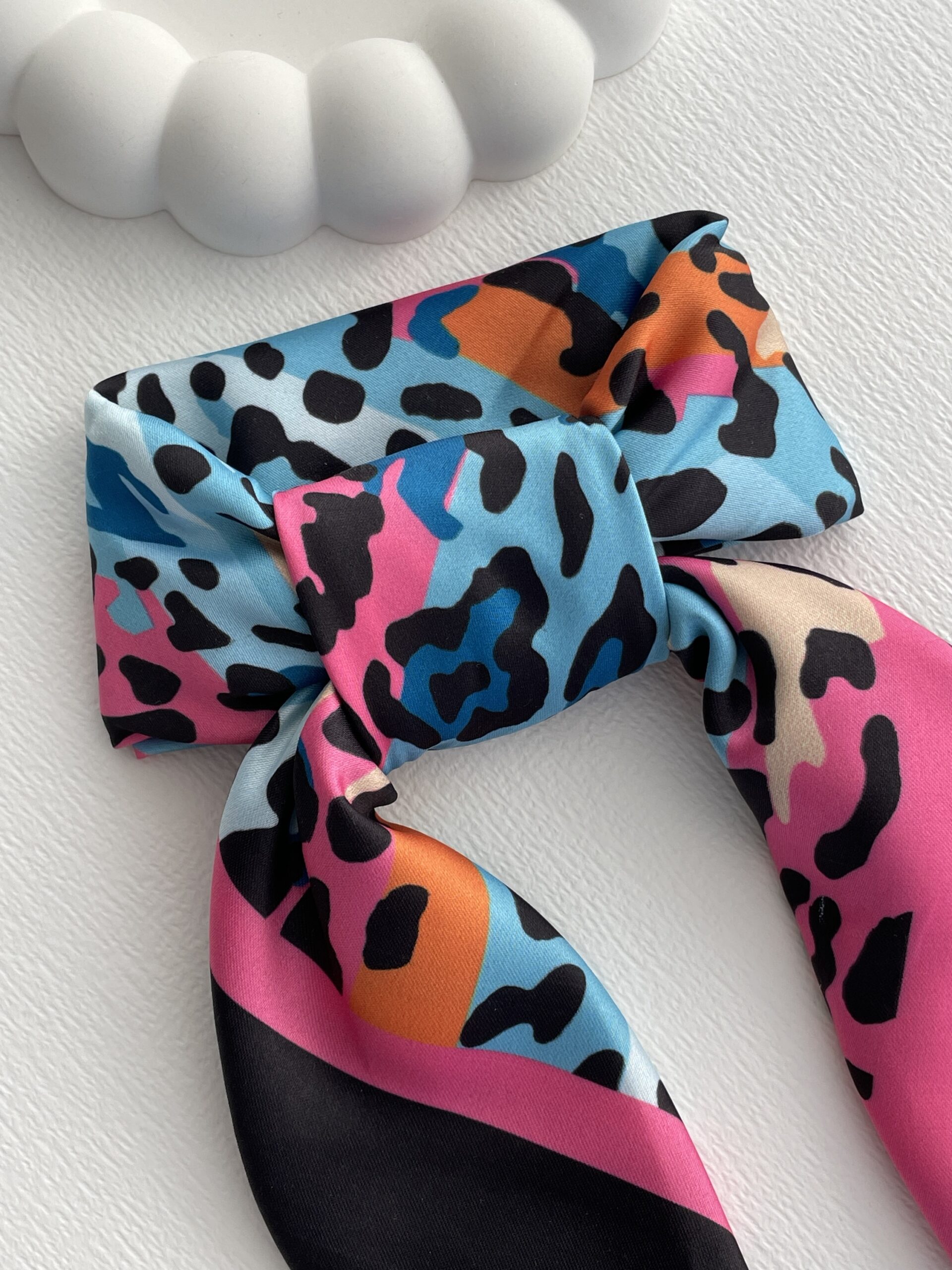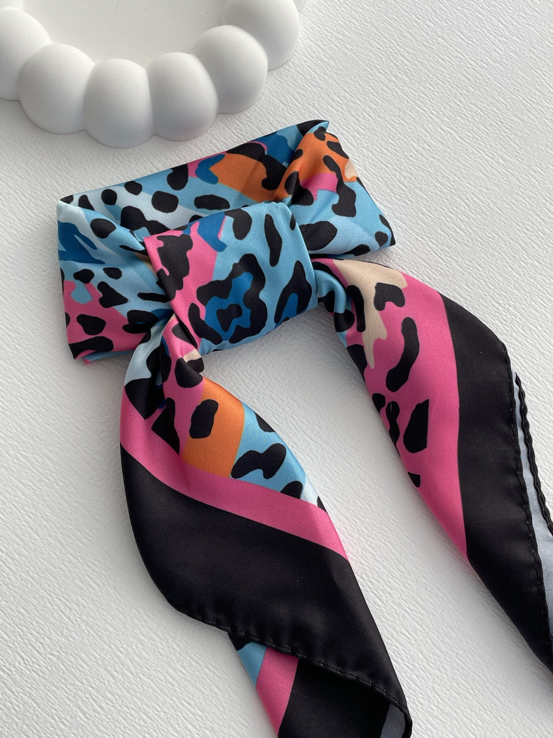 Siyah Pembe Biyeli Renkli Leopar Desen Saten Fular