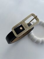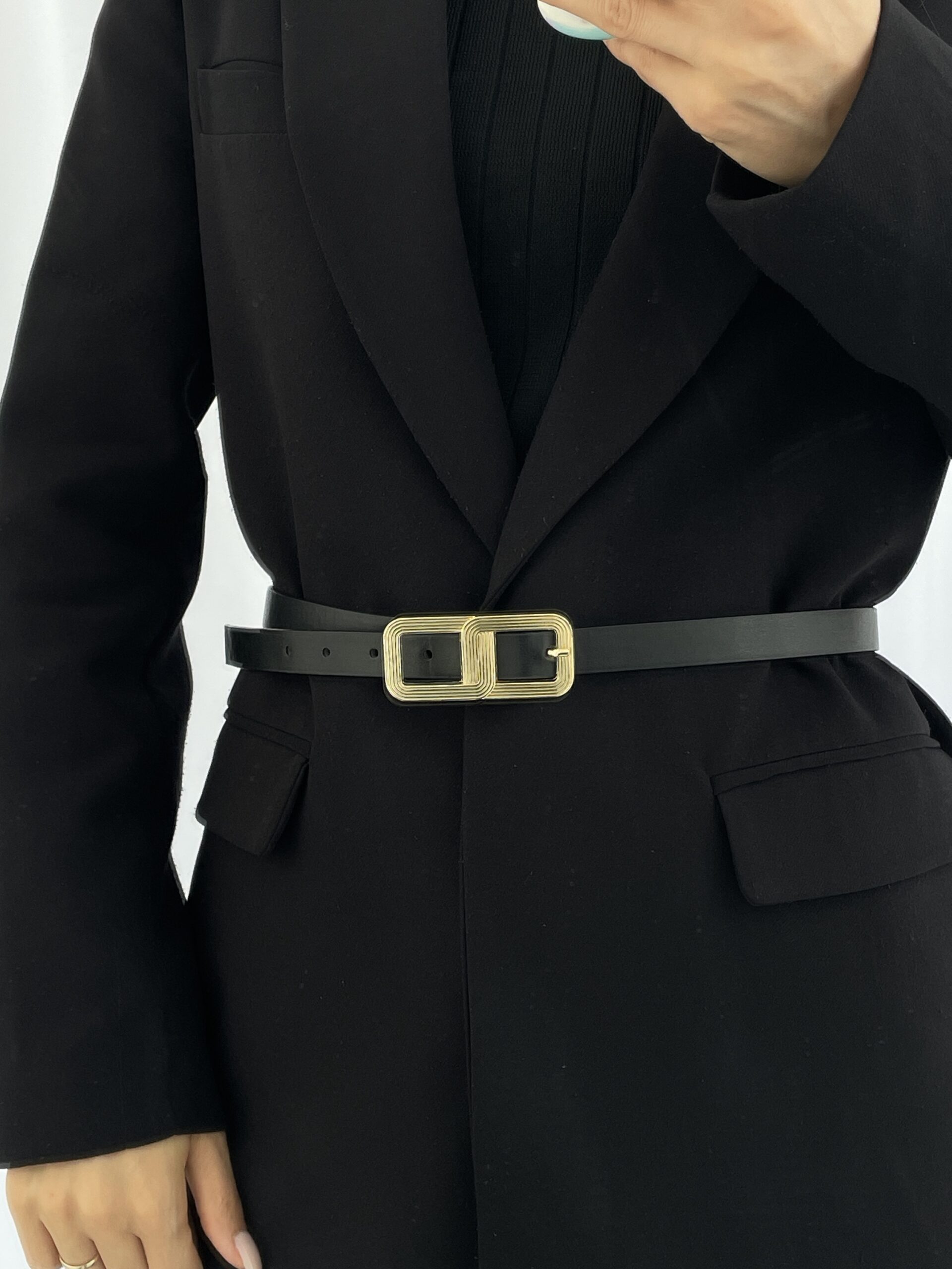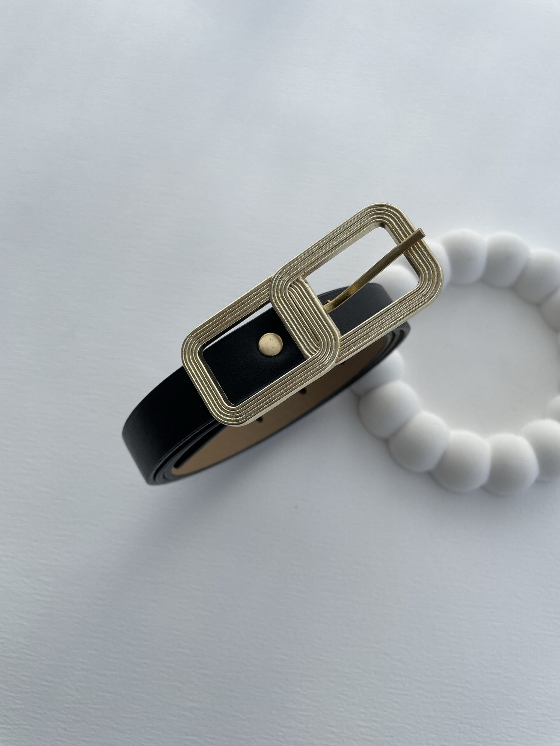 Sade düz suni deriden, gold metal tokalı kemer. Genişlik: 1,5cm.