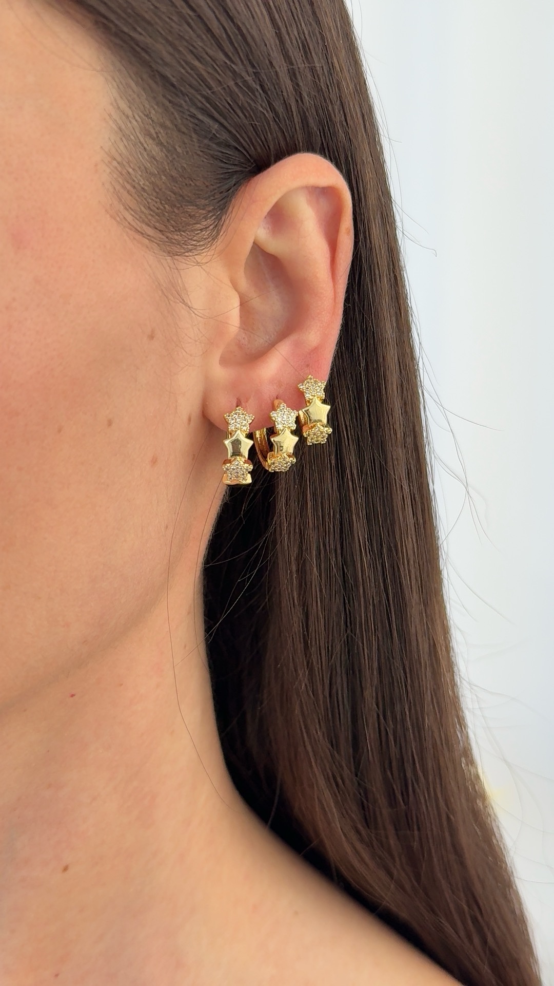 Özel Seri Yıldız Detay Gold Üçlü Halka Küpe Seti