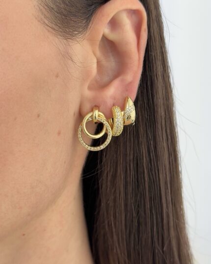 Özel Seri Zirkon Taşlı Yıldız Tasarım Üçlü Gold Küpe Seti