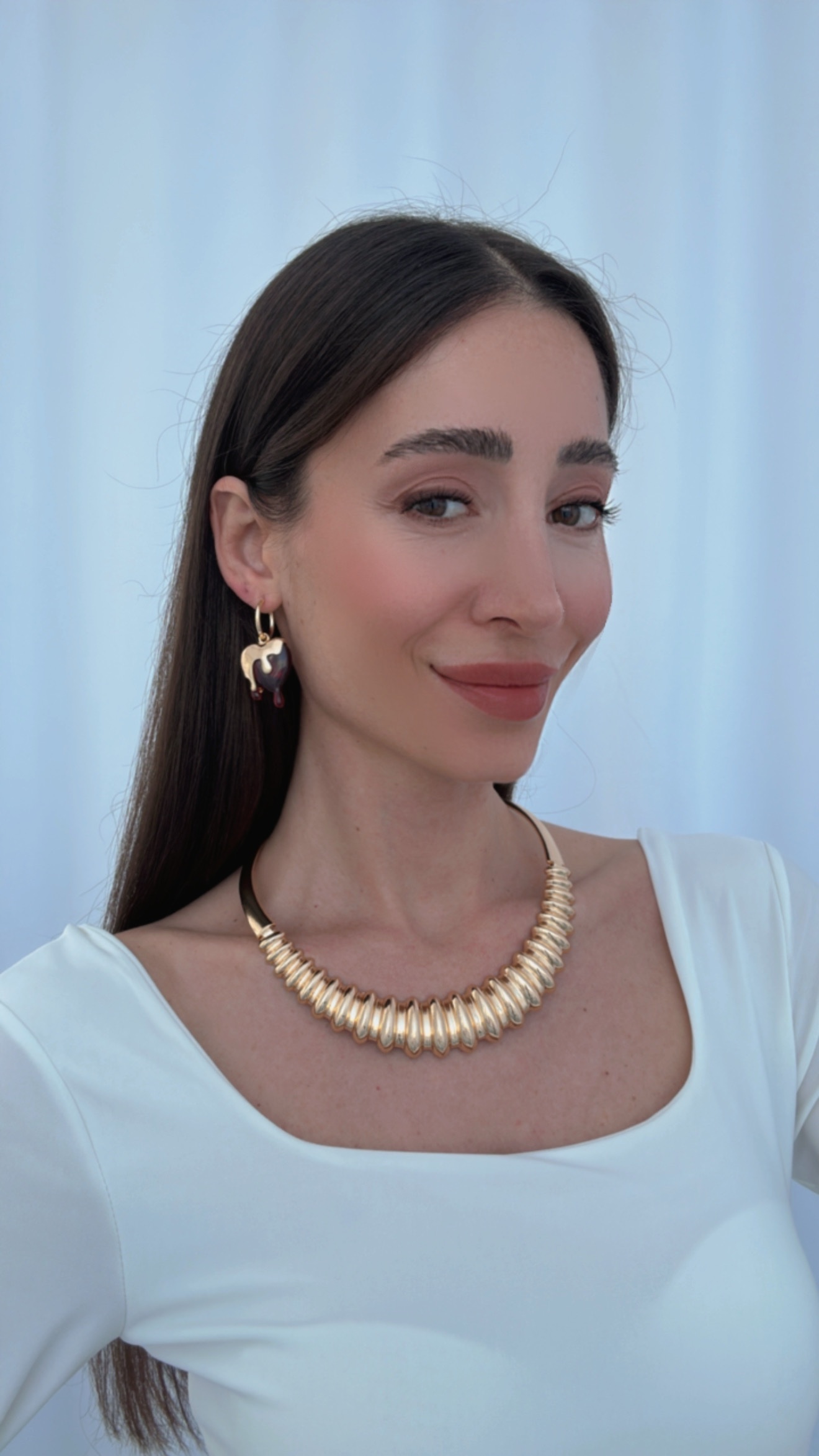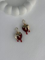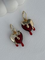 Özel Seri Gold Damla Detay Kırmızı Kalp Tasarım Küpe