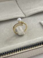 Özel Seri Baget Taşlı İncili Gold Ayarlanabilir Yüzük