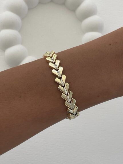 Özel Seri Zirkon Taş Detay Geometrik Tasarım Gold Kelepçe Bileklik