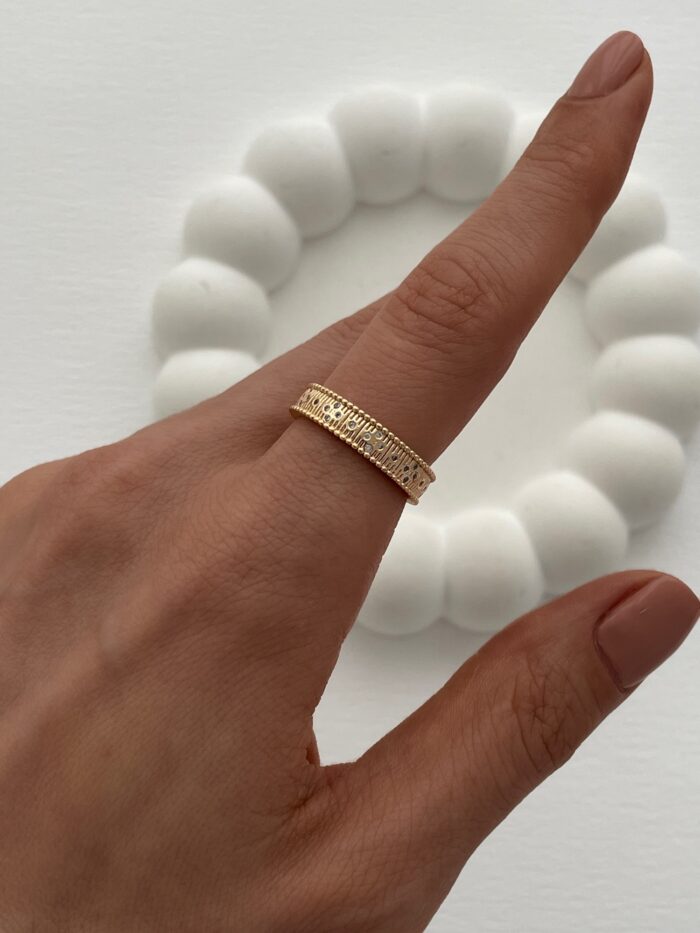 XUPING Çiçek Zirkon Taşlı Gold Ayarlanabilir Yüzük