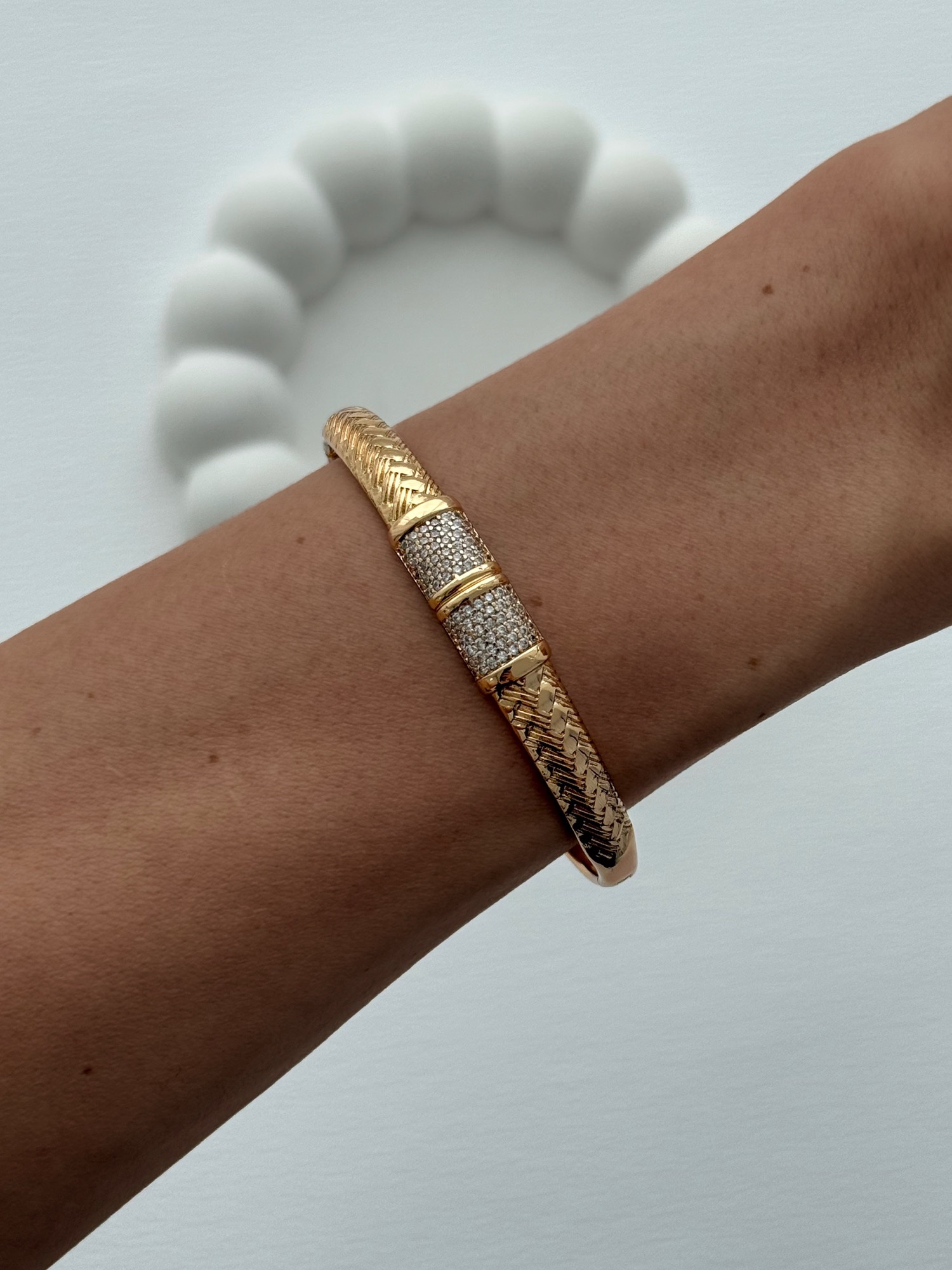 XUPING Zirkon Taşlı Desenli Gold Kelepçe Bileklik