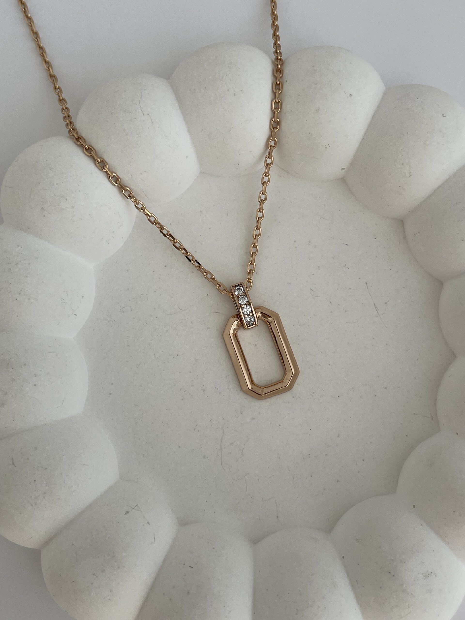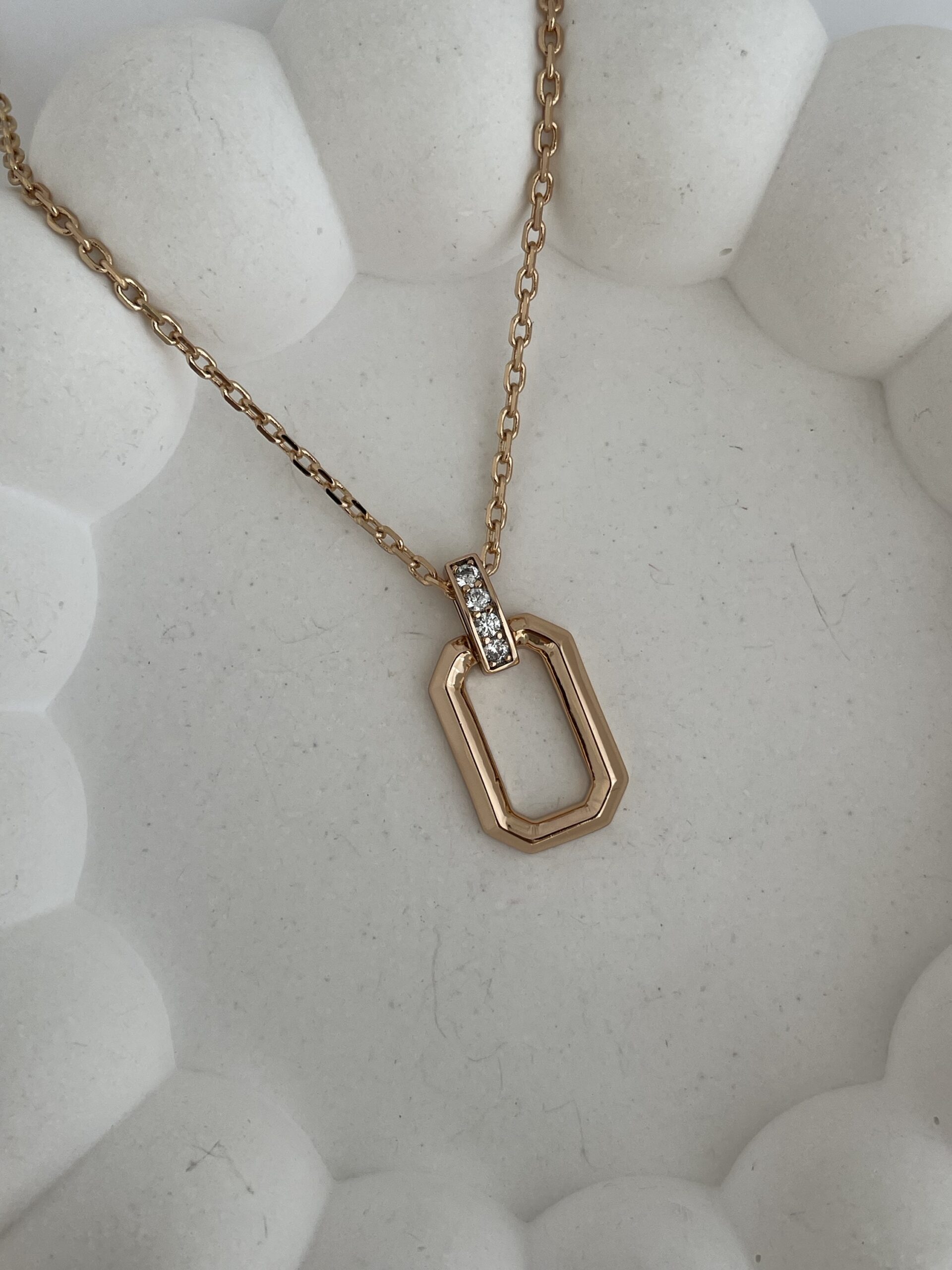 Xuping Zirkon Taşlı Dörtgen Tasarım Kolye