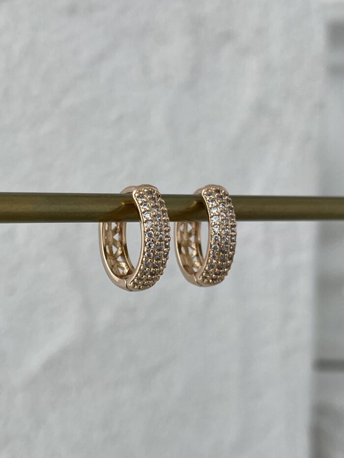 XUPING Zirkon Taşlı Kalın Mini Gold Halka Küpe