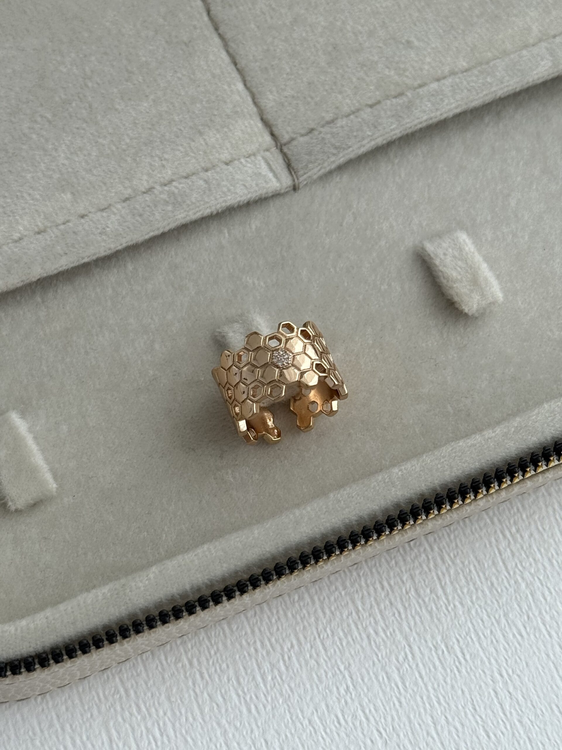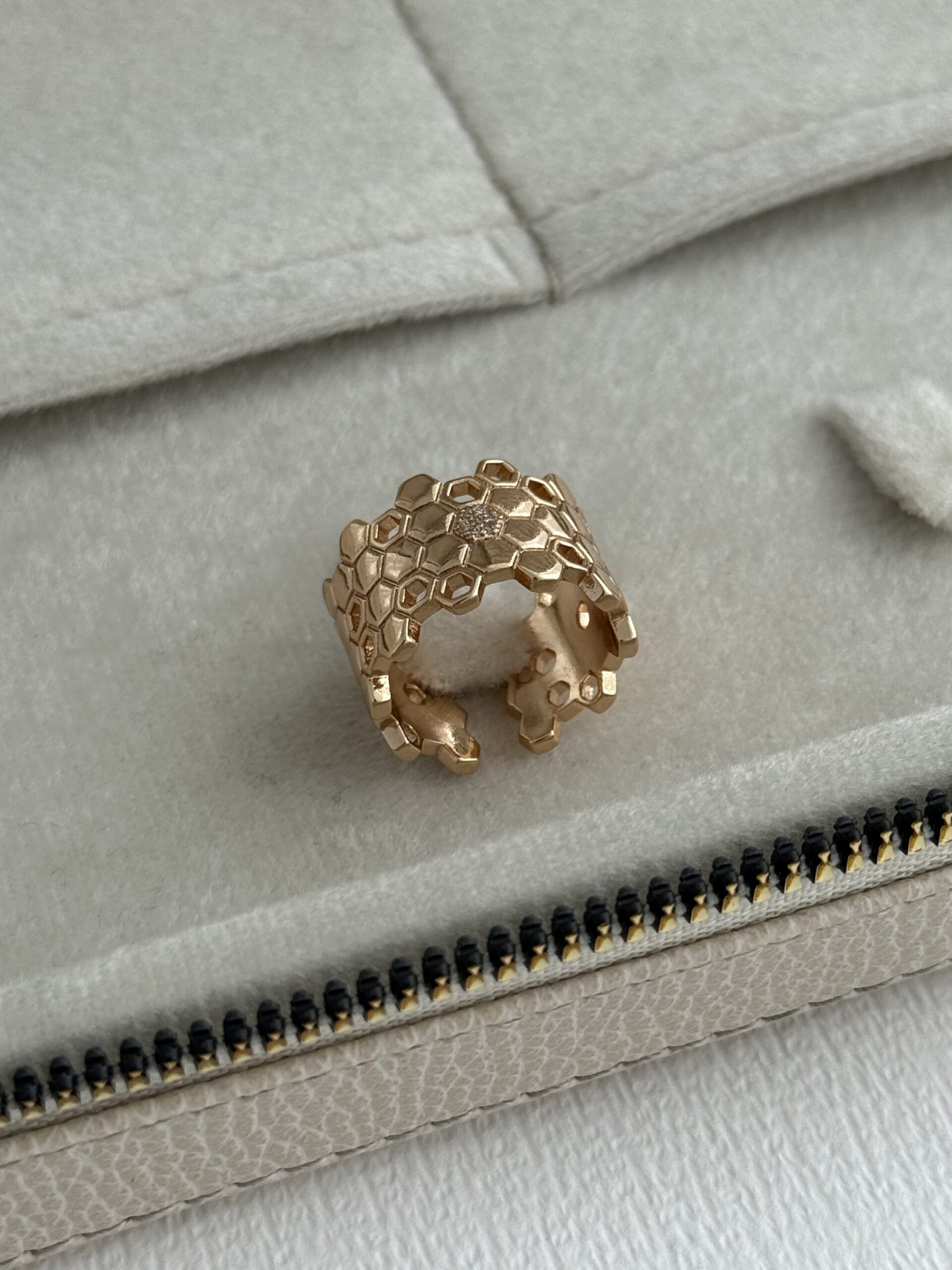 XUPING Zirkon Taşlı Kalın Petek Tasarım Gold Ayarlanabilir Yüzük