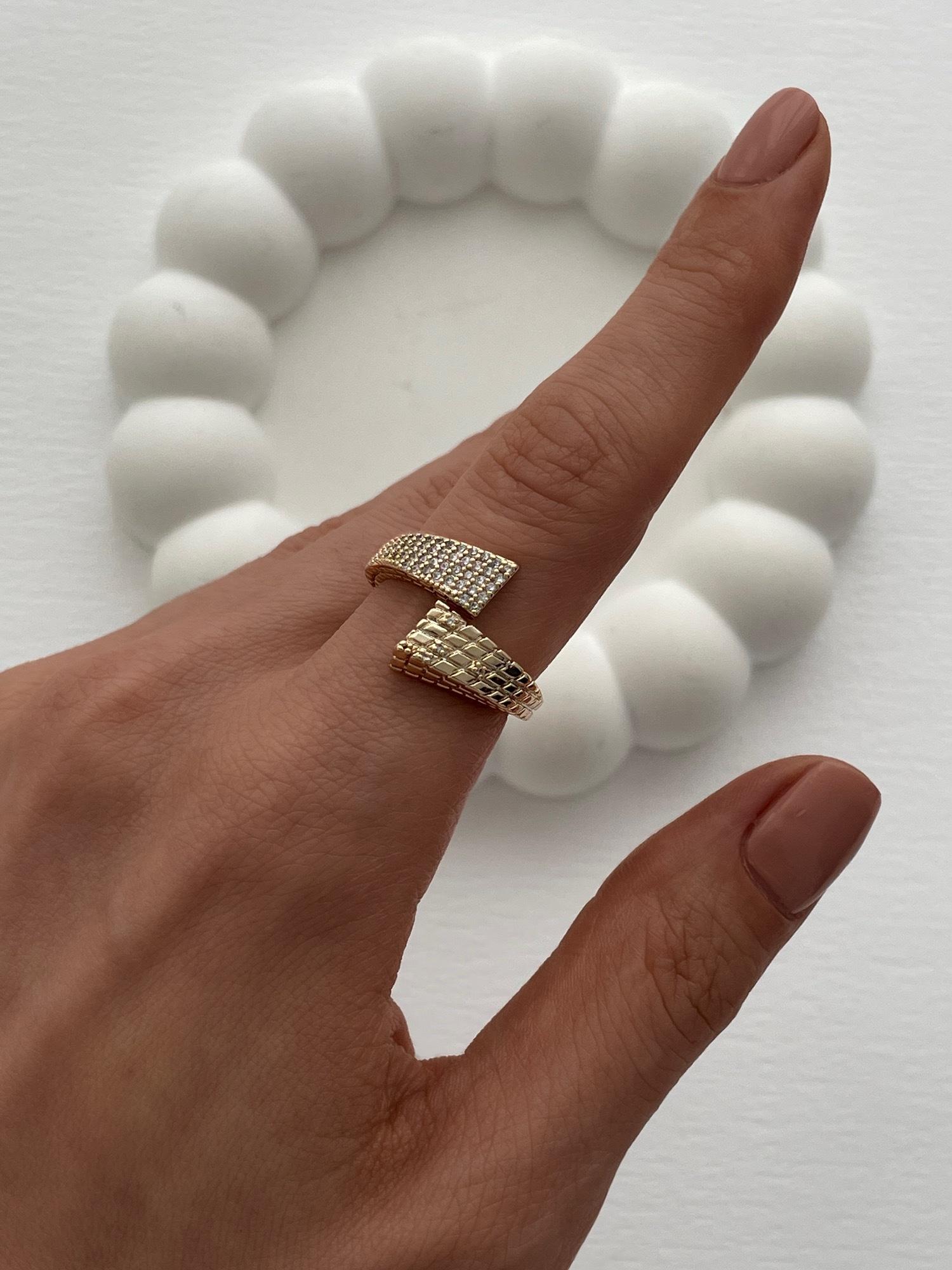 XUPING Zirkon Taşlı Sarmal Gold Ayarlanabilir Yüzük