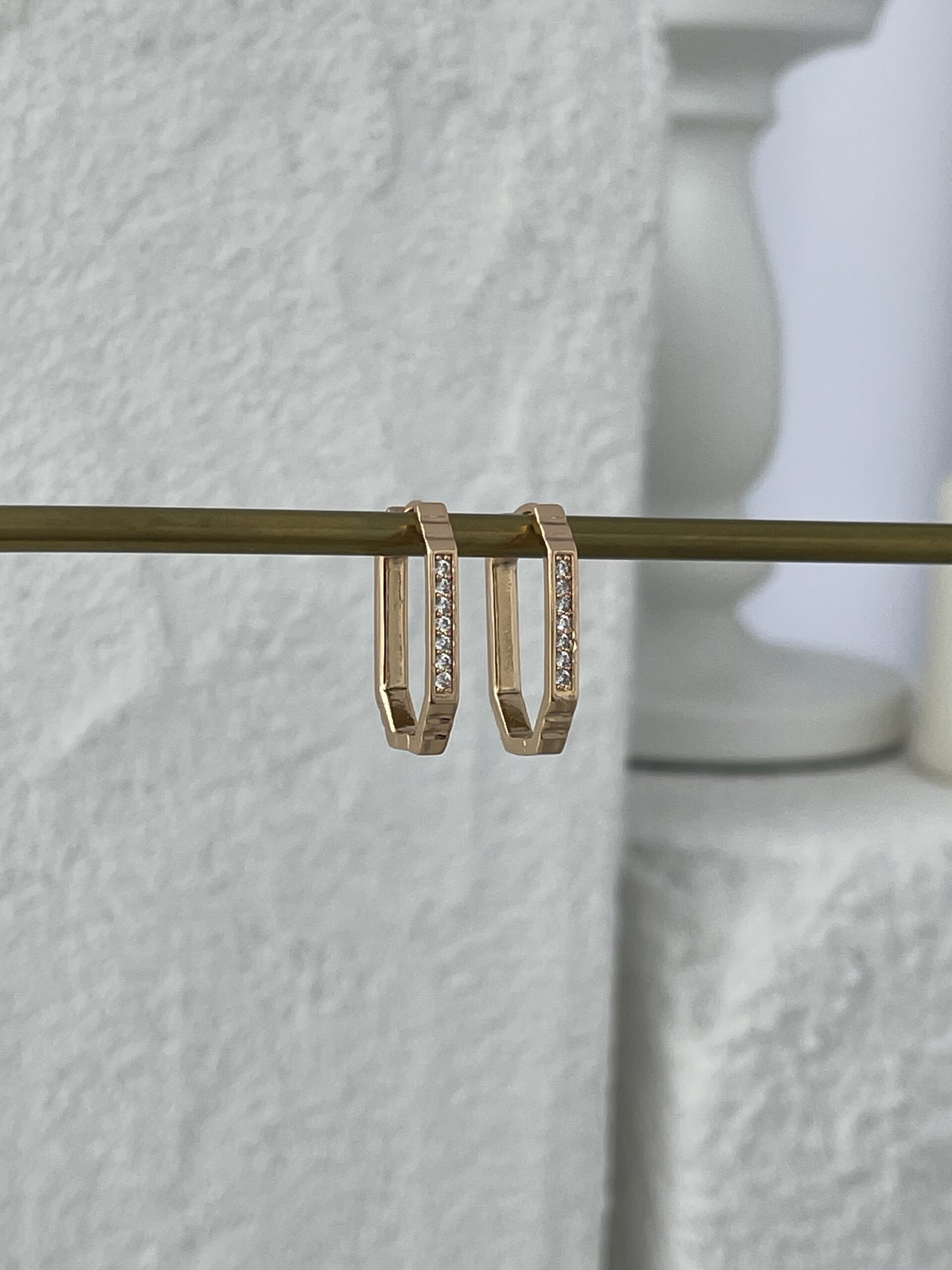 XUPING Zirkon Taşlı Sekiz Köşeli Gold Küpe