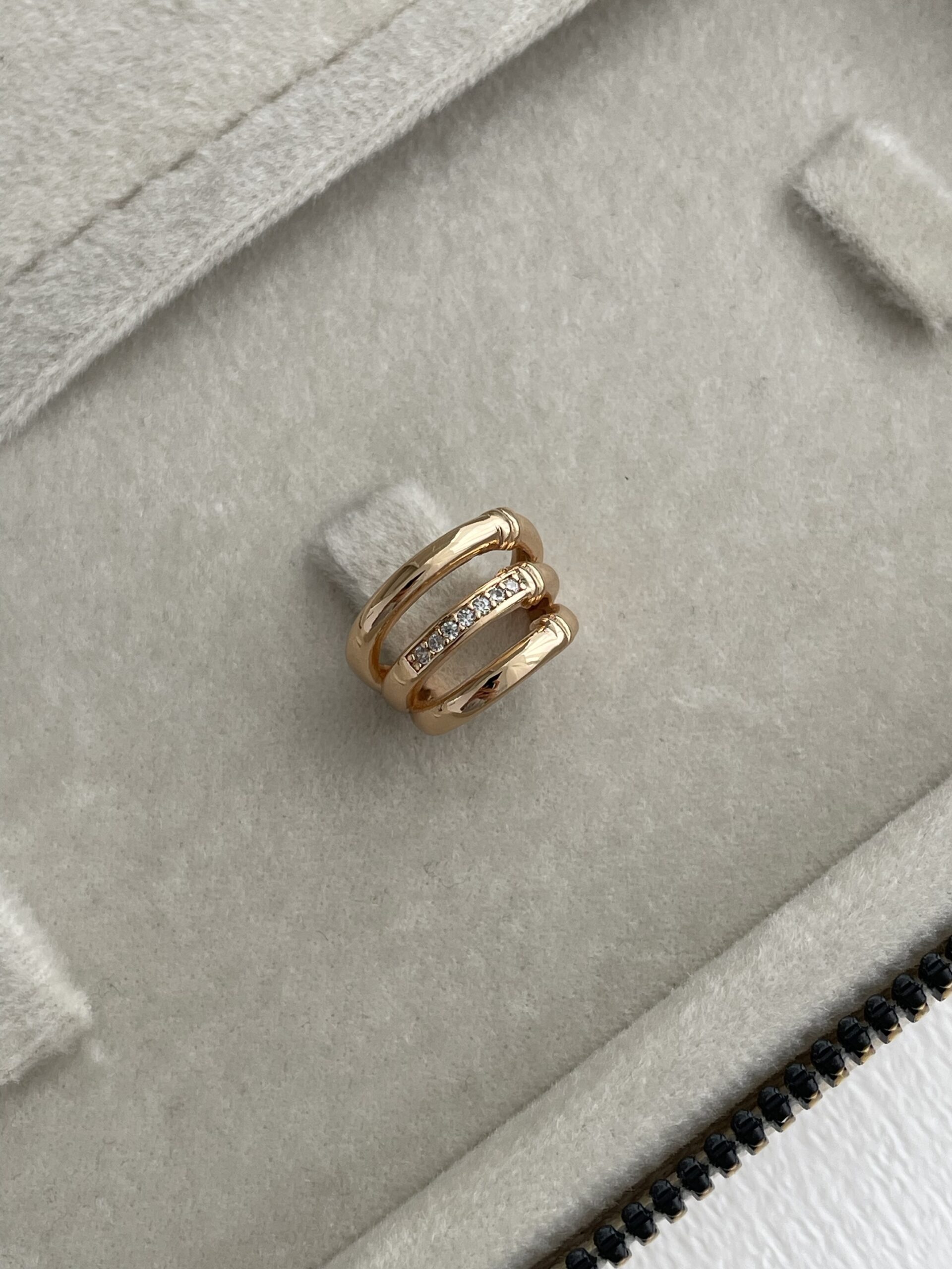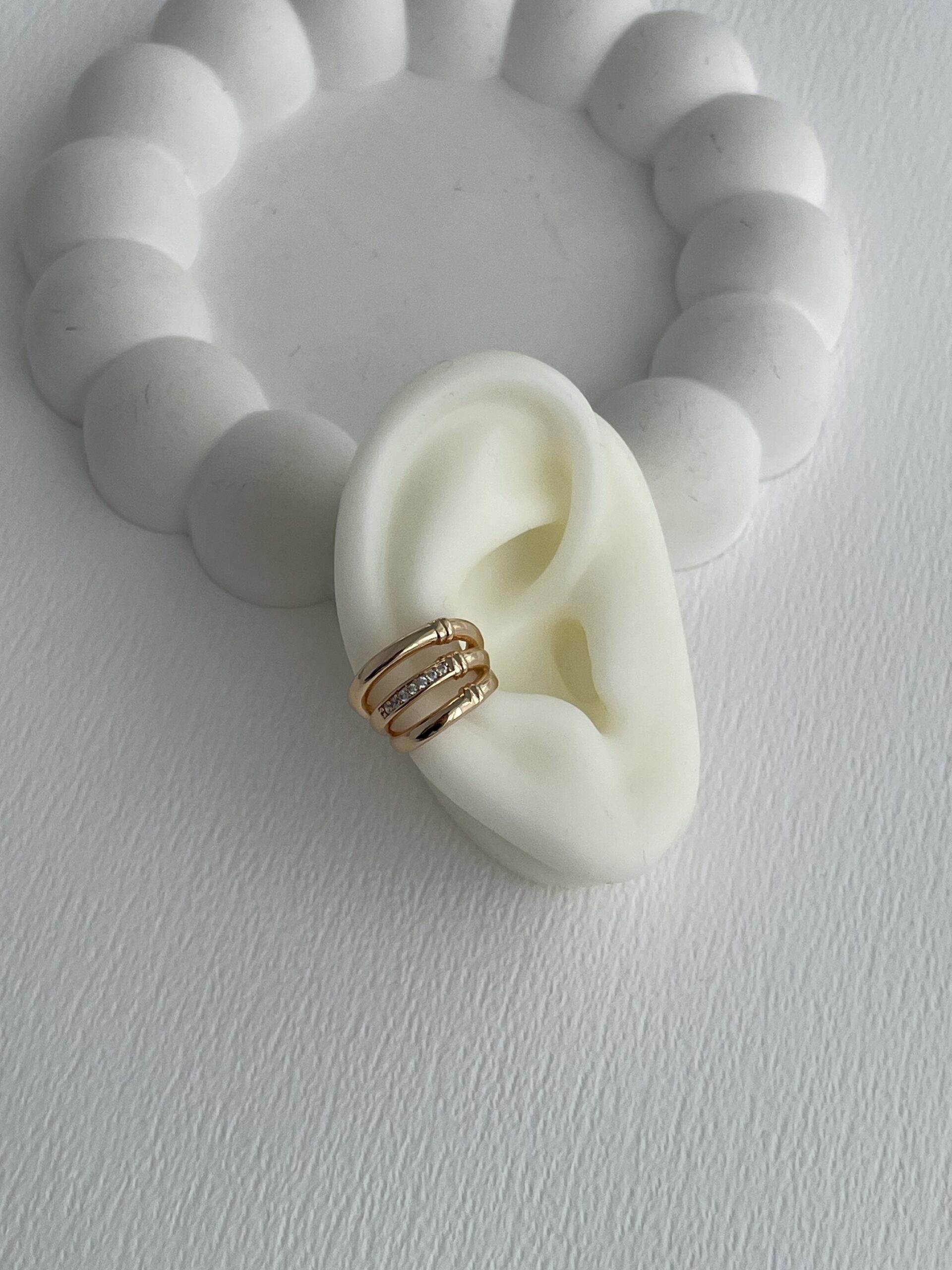 XUPING Zirkon Taşlı Üçlü Tel Görünüm Gold Earcuff Küpe