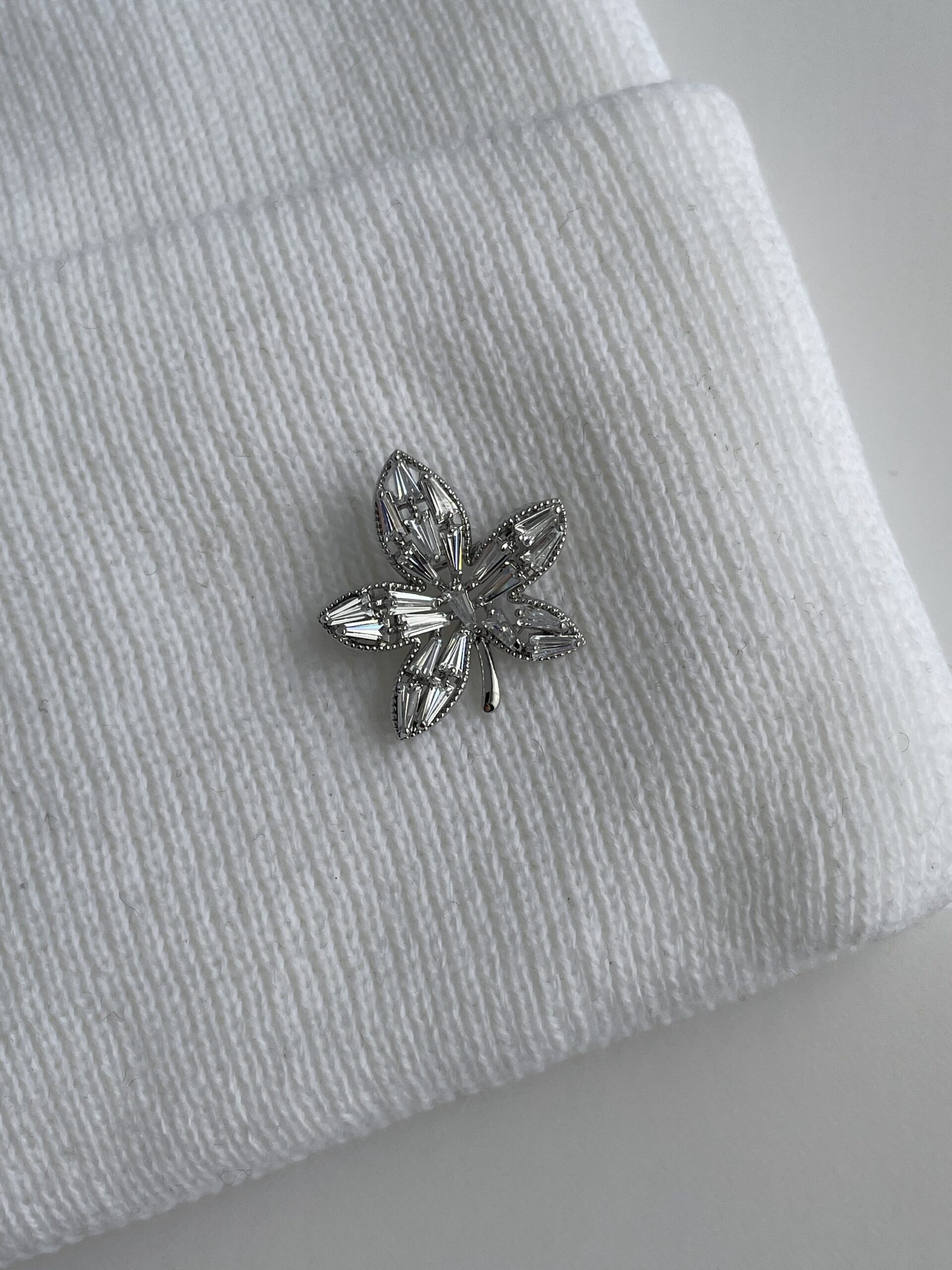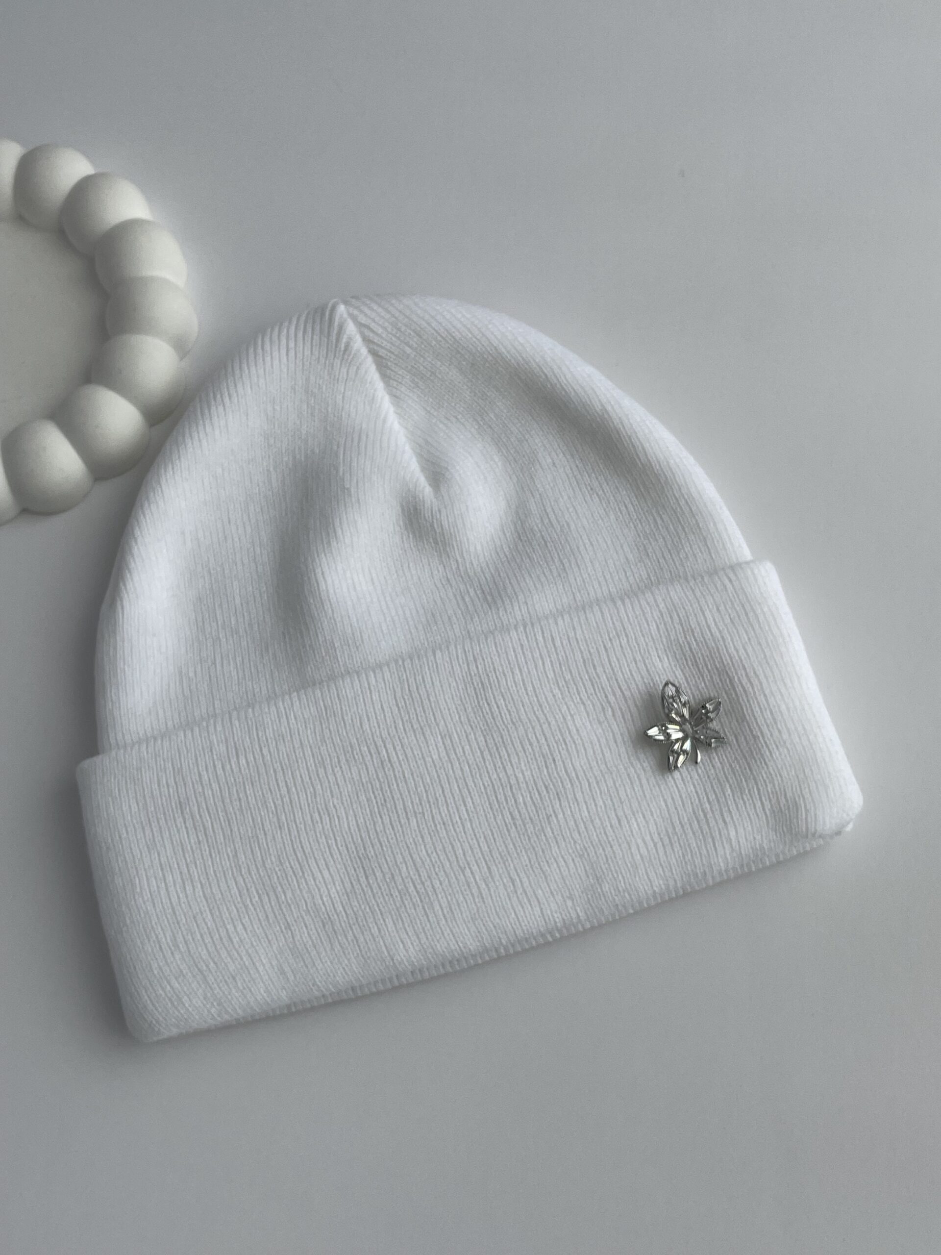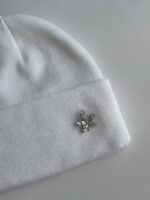 Yaprak Desen Broşlu Beyaz Bere