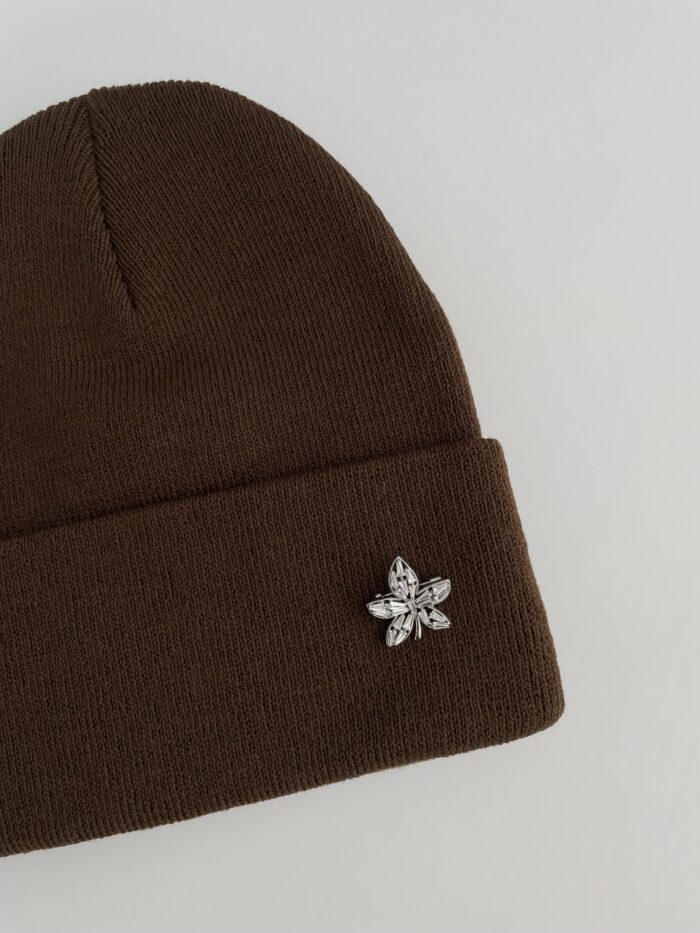 Yaprak Desen Broşlu Kahverengi Bere