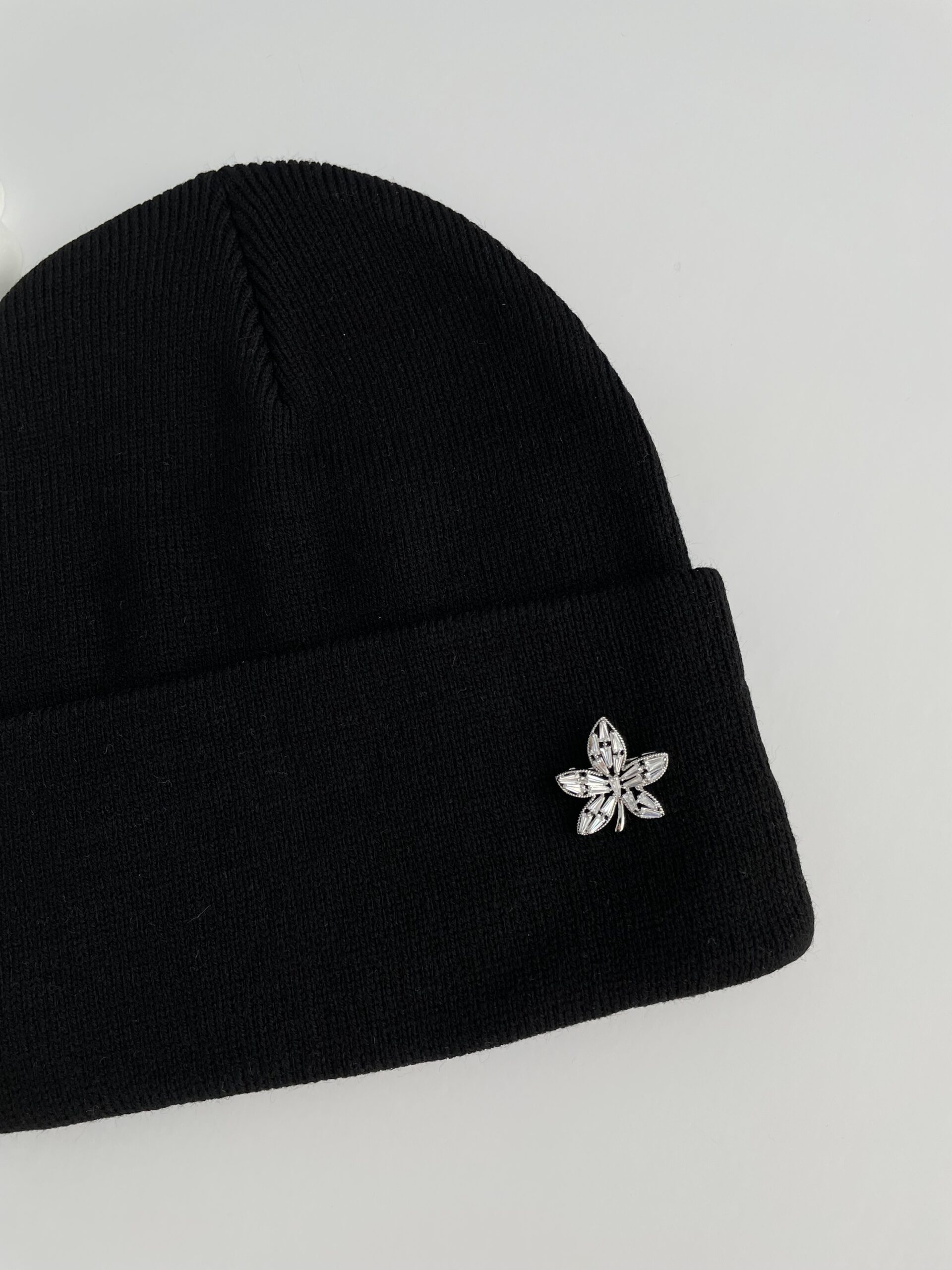 Yaprak Desen Broşlu Siyah Bere