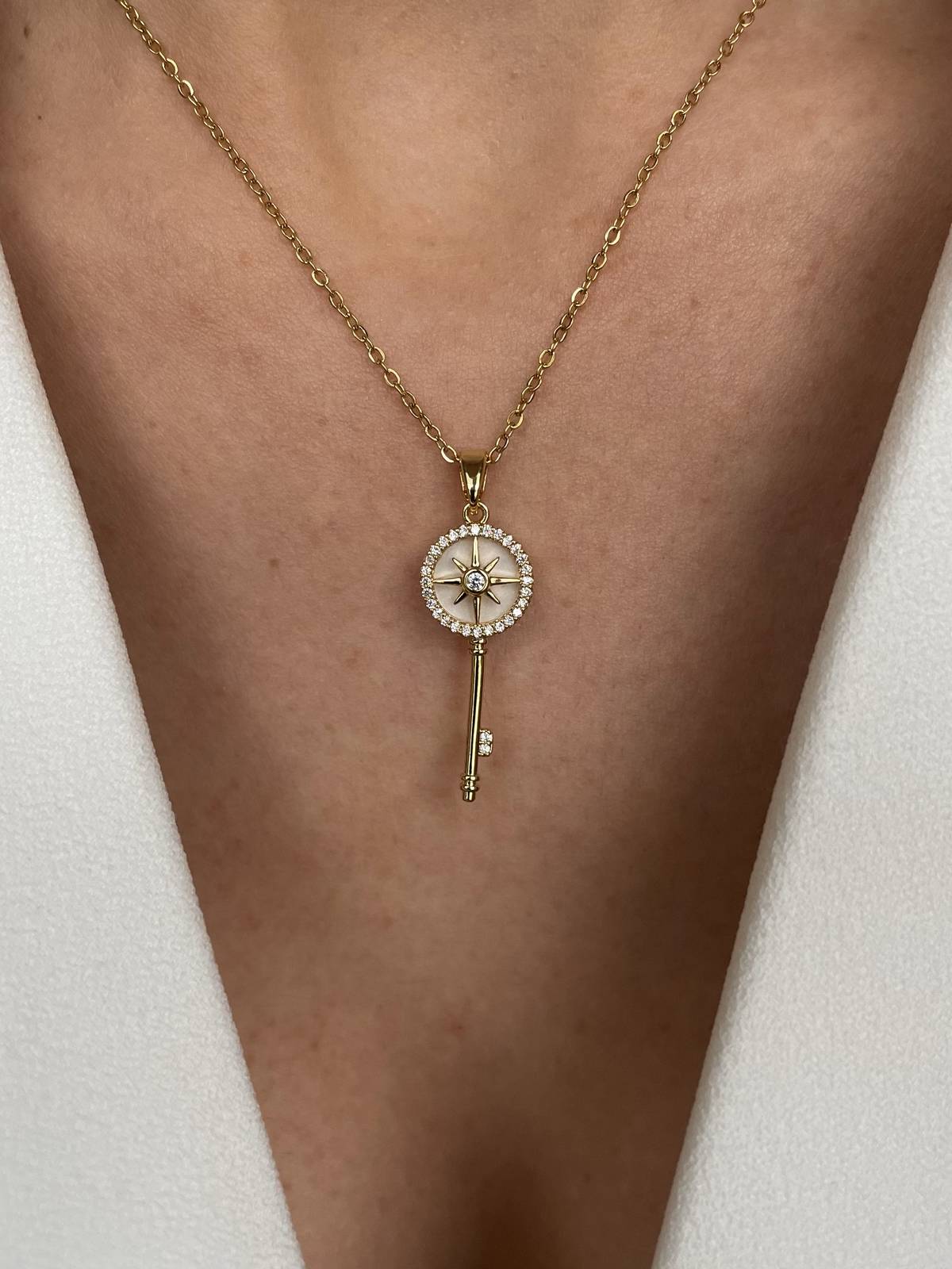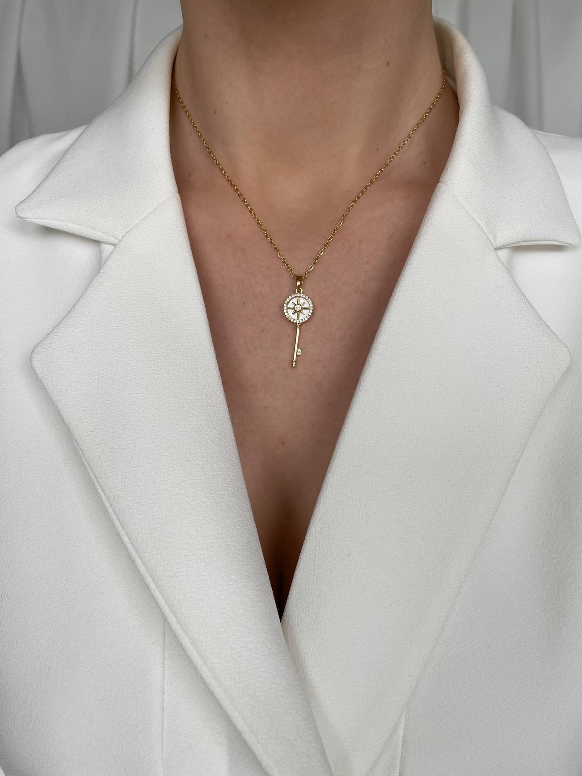 Zirkon Taşlı Anahtar Tasarım Çelik Kolye
