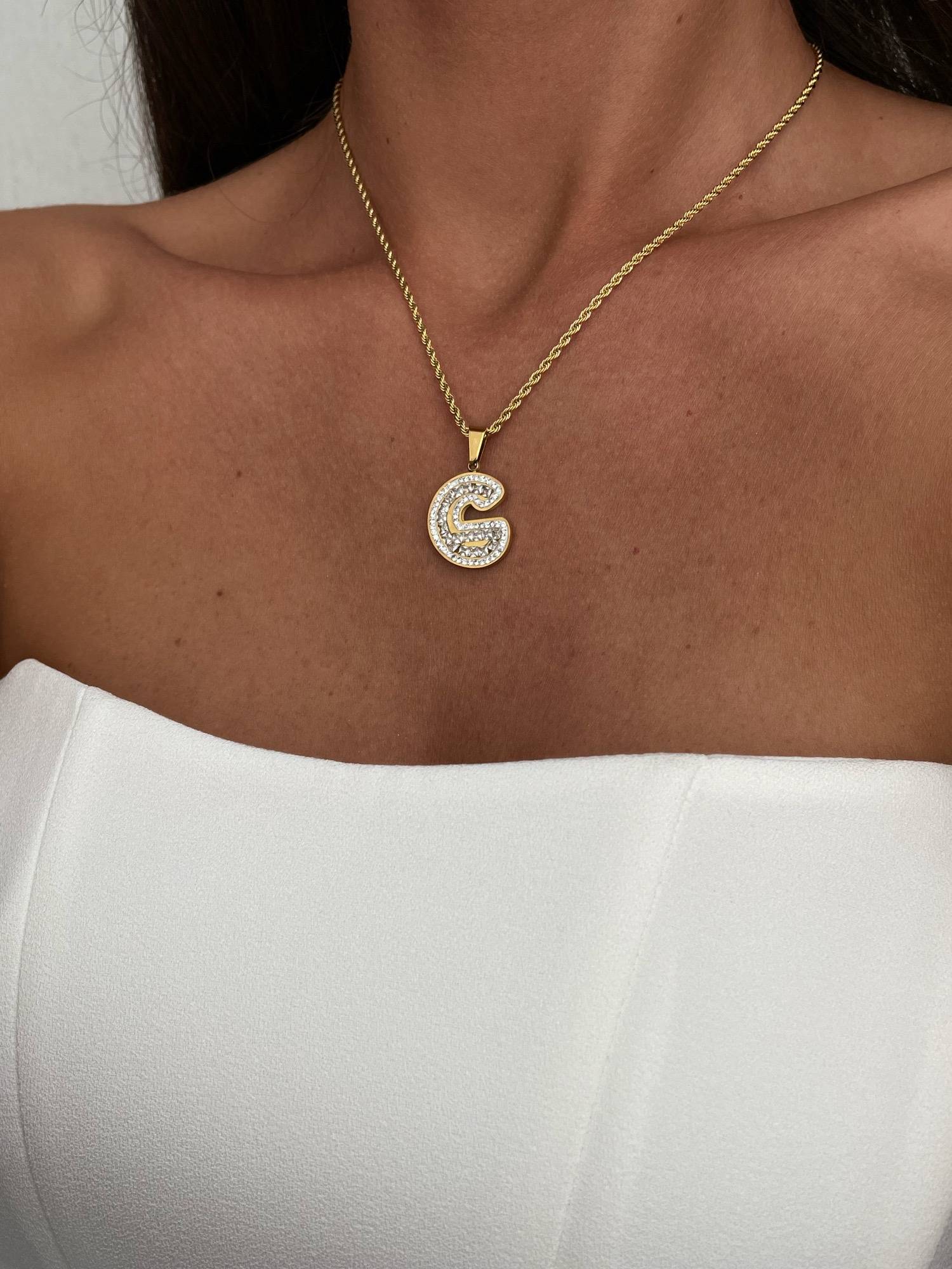 Zirkon Taşlı Burgu Zinci G Harfli Kolye