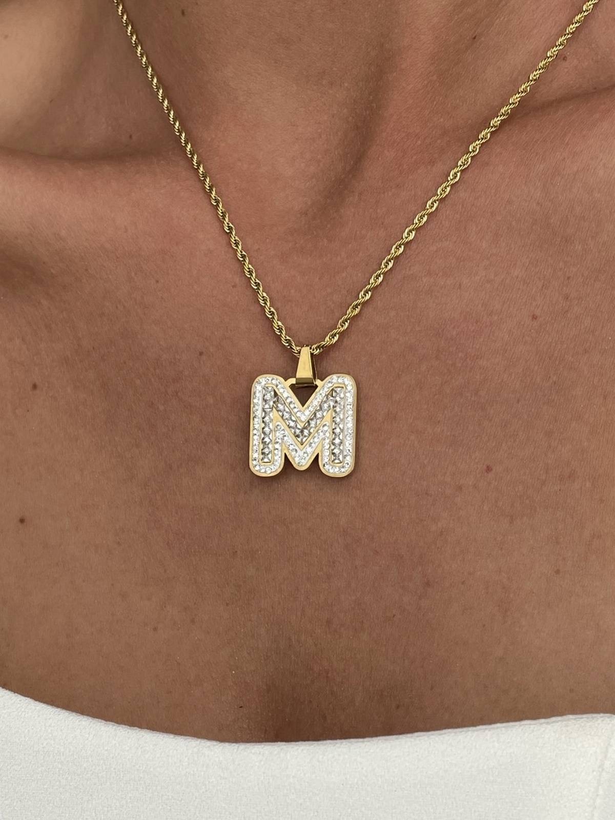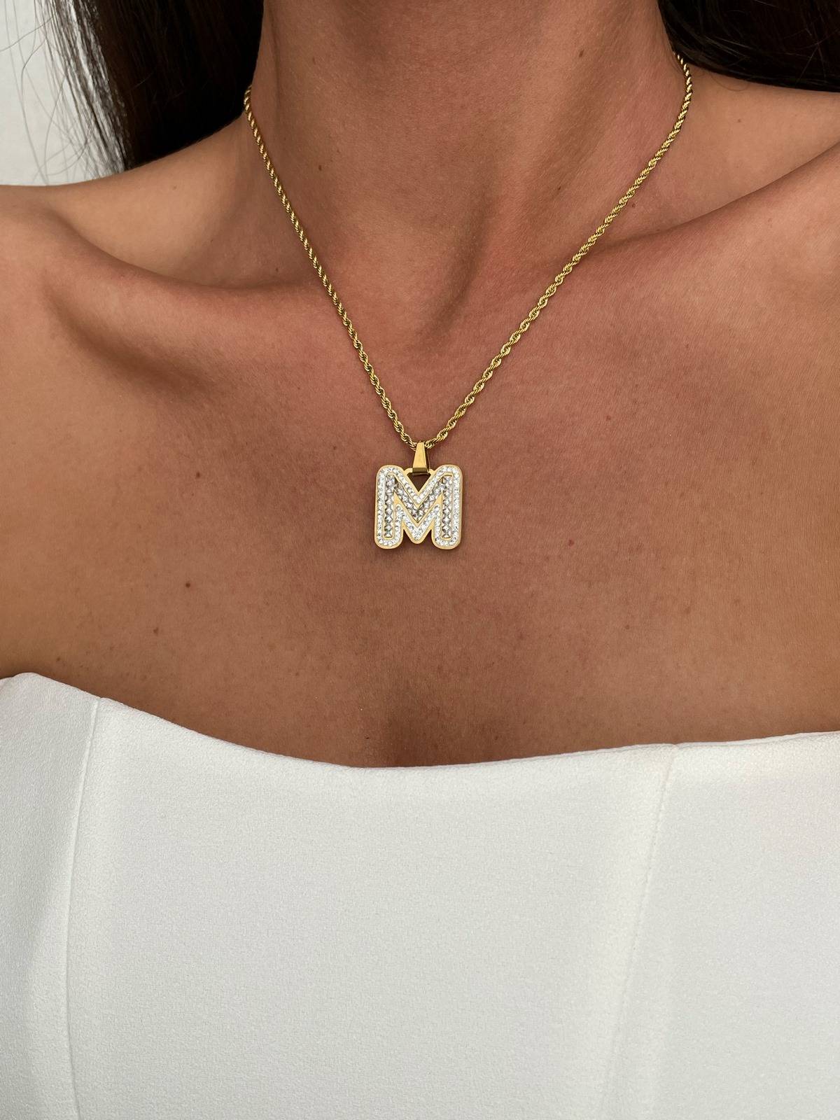 Zirkon Taşlı Burgu Zinci M Harfli Kolye