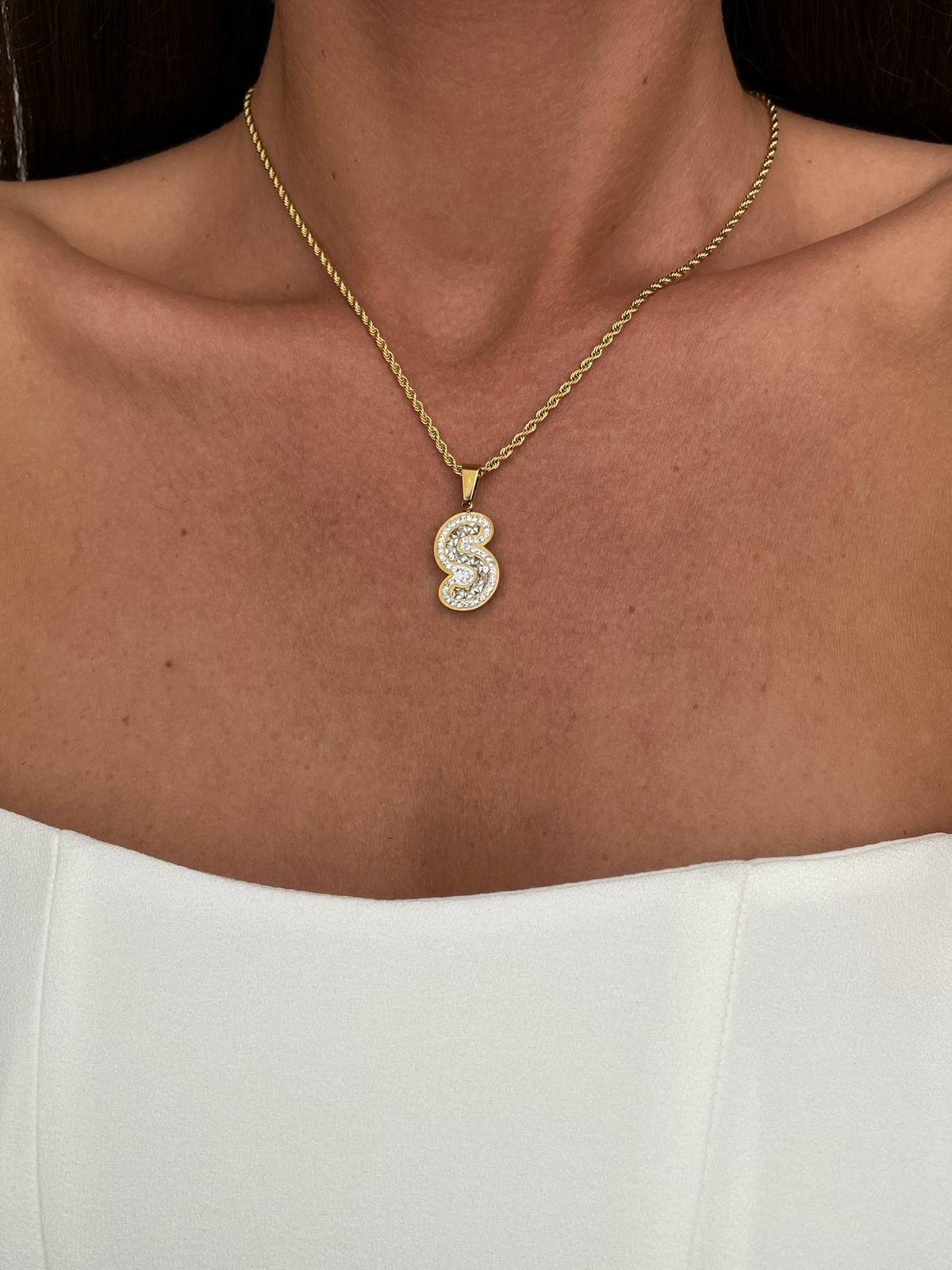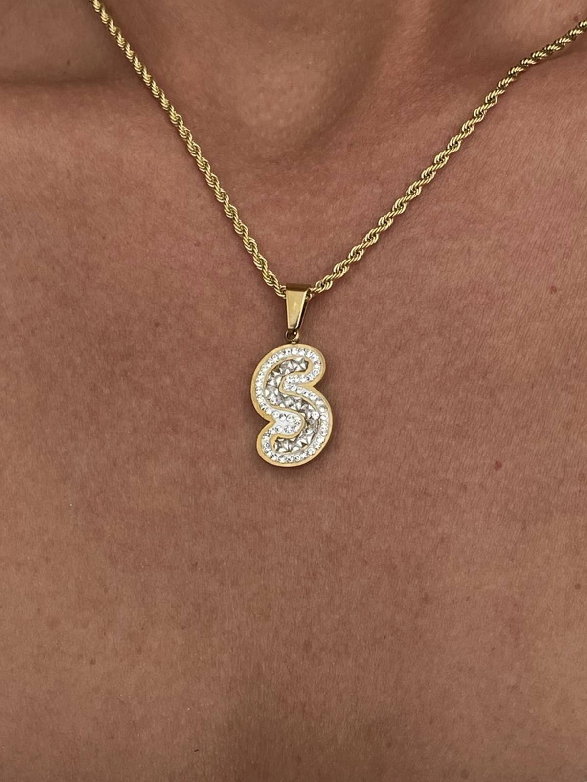 Zirkon Taşlı Burgu Zinci S Harfli Kolye