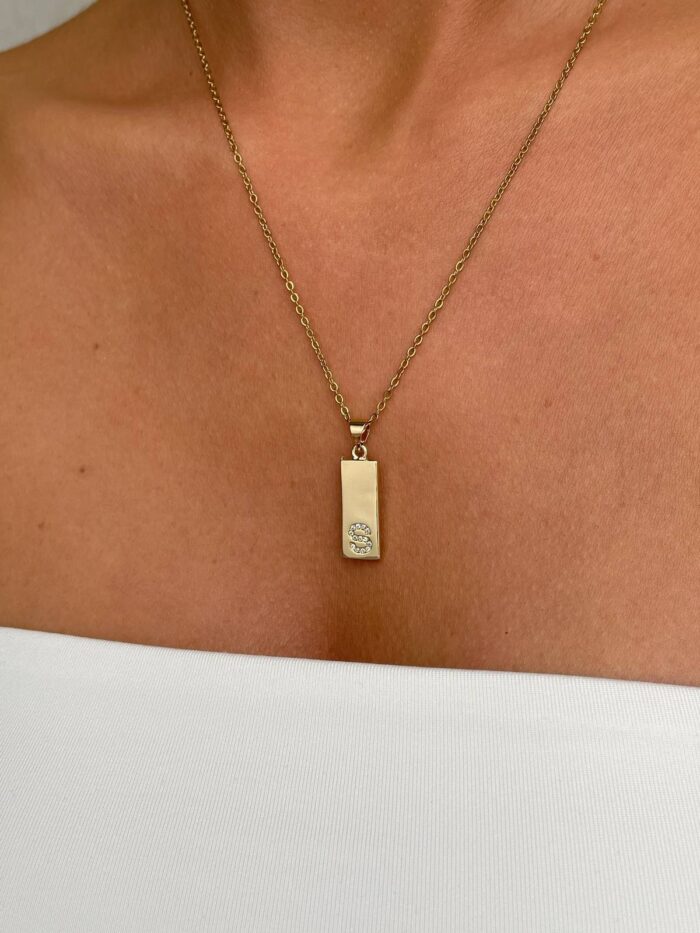 Zirkon Taşlı Dikdörtgen Plaka S Harf Kolye