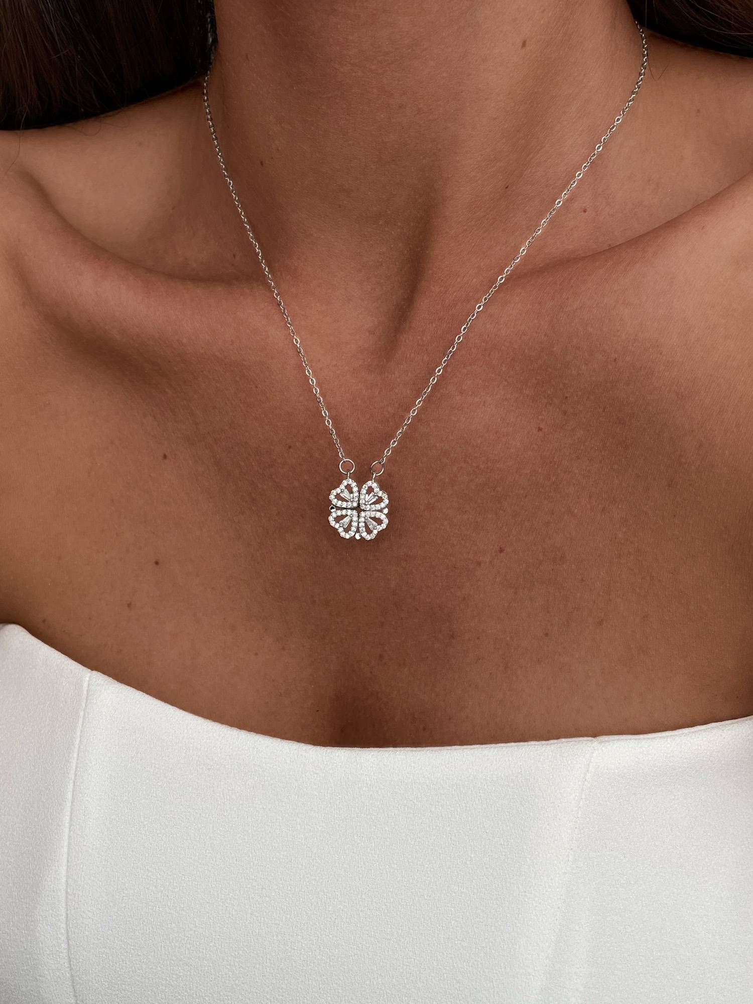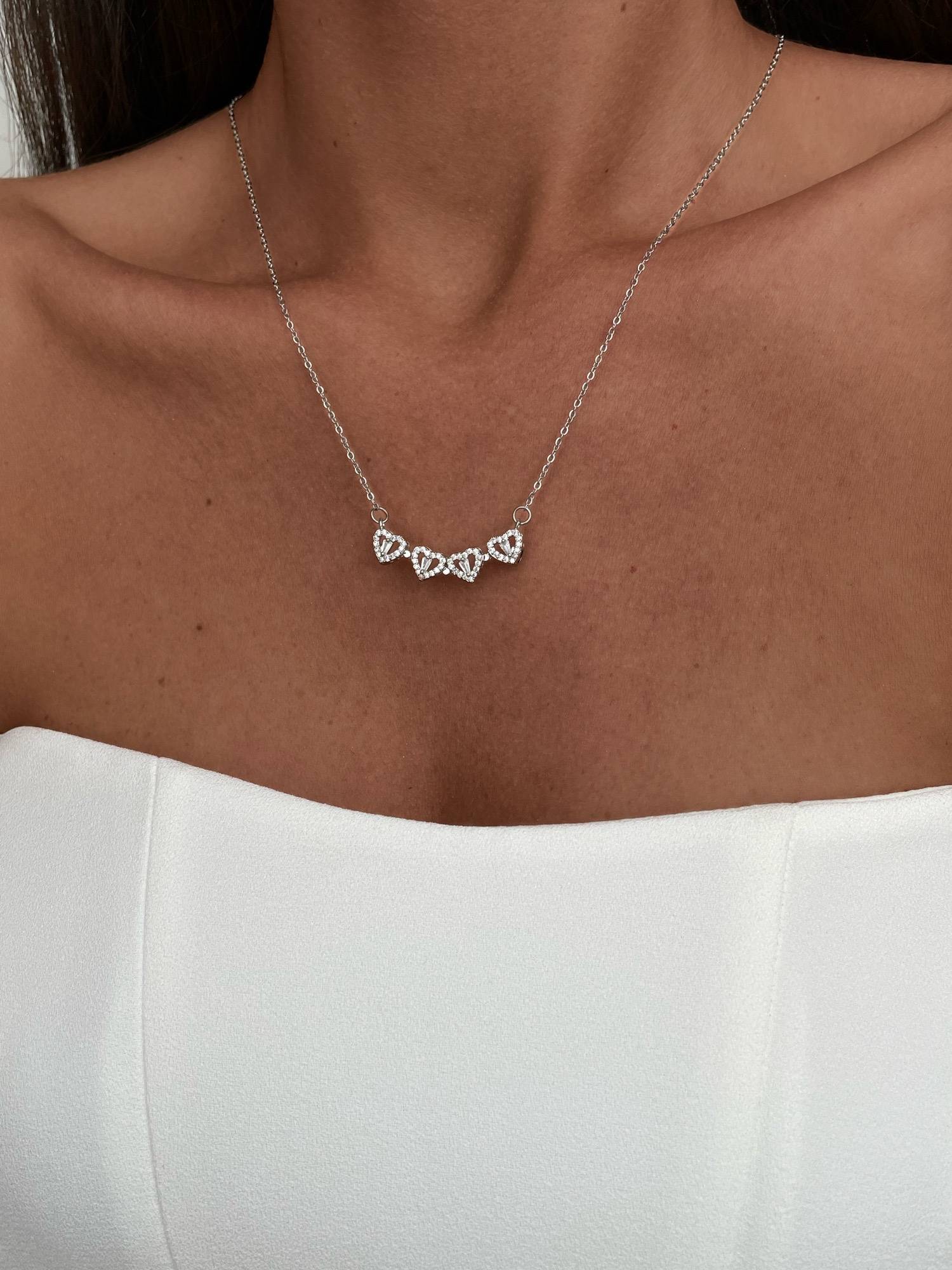 Zirkon Taşlı Minimal Kalpli Gümüş Açılabilir Kolye